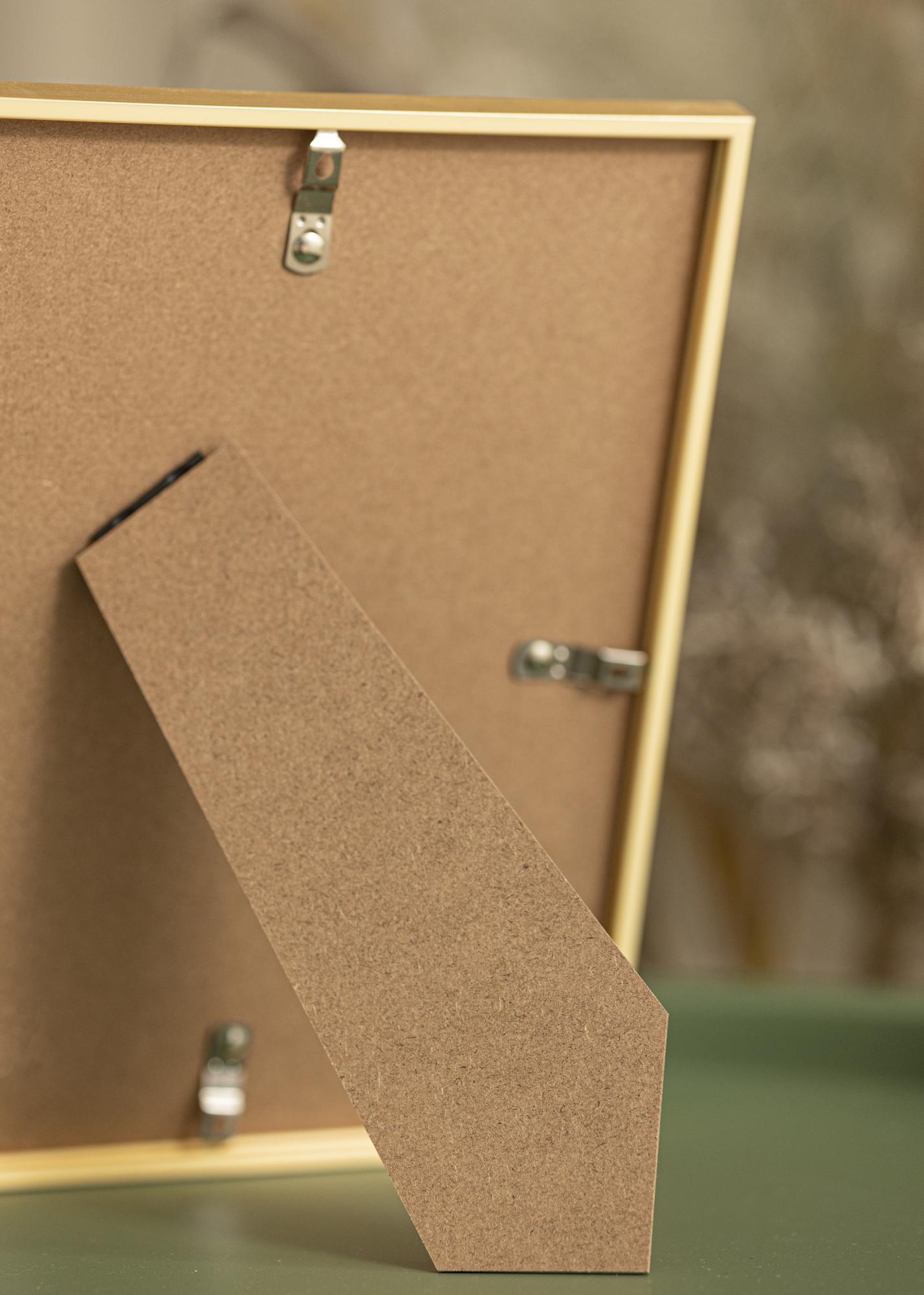 Díky přiloženým kovovým závěsům na zadní straně můžete snadno zavěsit svůj rám jak horizontálně, tak vertikálně, což vám poskytuje flexibilitu při jeho umístění na stěnu. Vytvořte osobní a elegantní nástěnnou dekoraci s tímto zlatým rámem a jeho černou paspartou, ideální pro zvýraznění vašich obrázků o velikosti 20x28 cm.