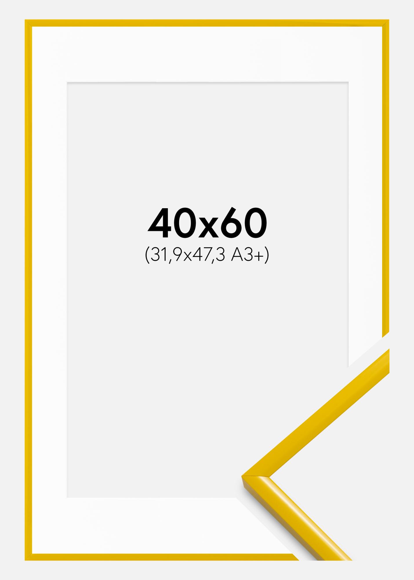 Rám má úzkou šířku 9,8 mm a hloubku 16,5 mm, což poskytuje moderní a minimalistický dojem. Lesklý povrch odráží světlo krásně a sofistikovaně zvýrazňuje žlutou barvu. S vnějšími rozměry 41,1x61,1 cm se tento rám stane poutavým prvkem na vaší zdi.