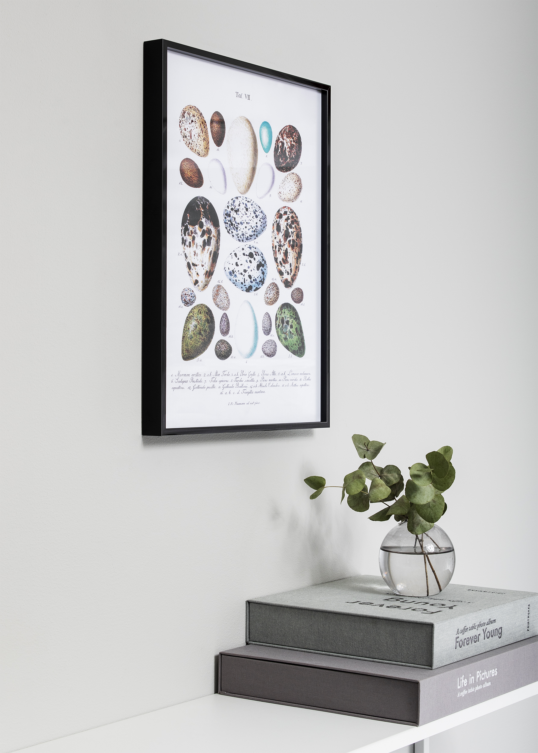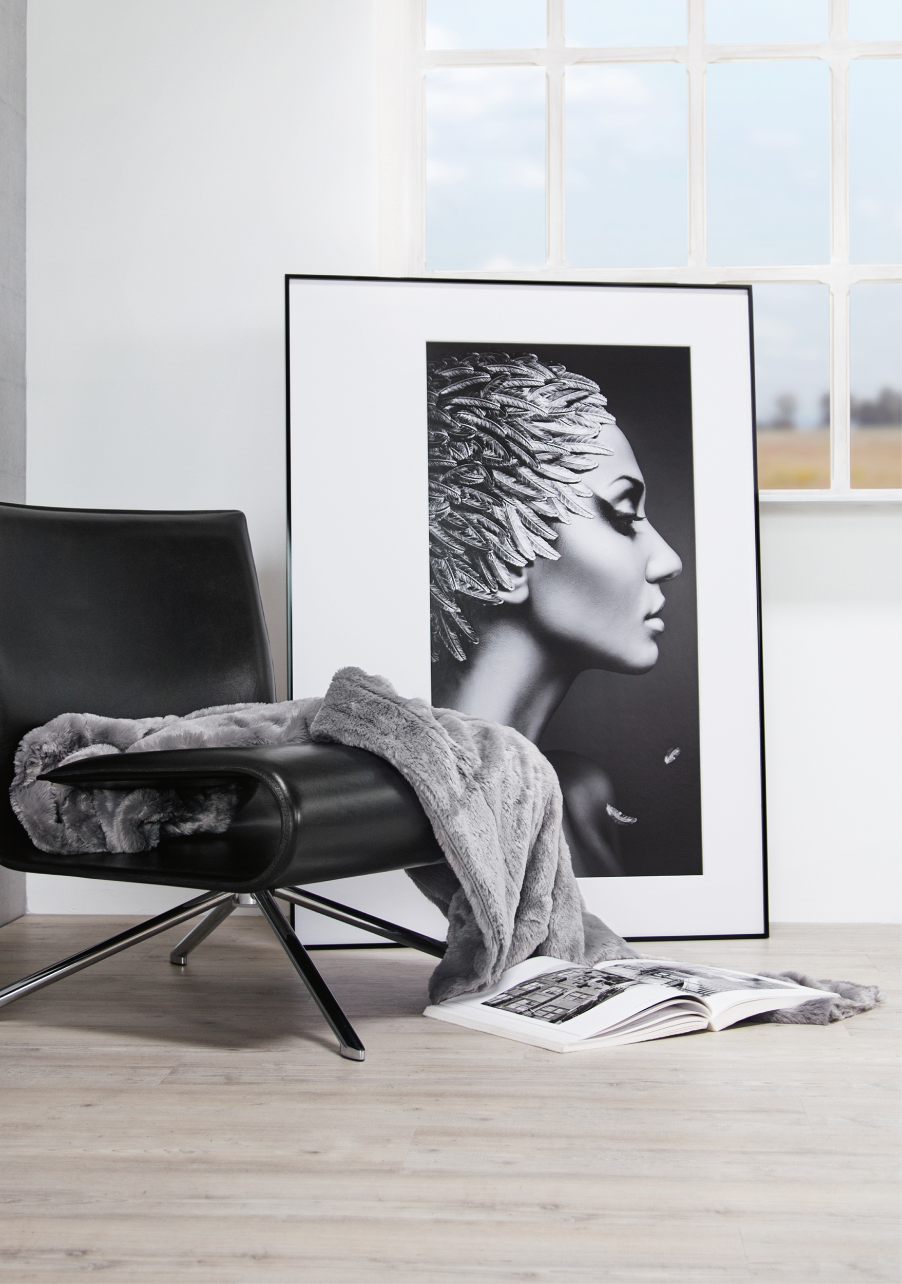 Elegantní prémiový rám s vysoce lesklým tenkým černým rámem, který se dokonale hodí do moderní a elegantní interiéru. Povrchová úprava rámu a minimalistický pocit v jeho štíhlém designu dělají z tohoto rámu krásný doplněk pro grafické plakáty a černobílé fotografie. Rám je vyroben z hliníku a je k dispozici v mnoha různých velikostech, což z něj činí skvělou možnost, pokud chcete vytvořit obrazovou stěnu s obrázky v několika různých formátech, které budou sjednoceny výběrem rámu.