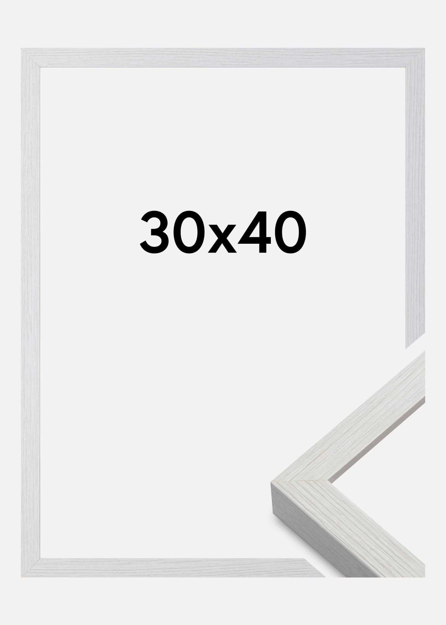 Stylový bílý dřevěný rám vysoké kvality s laserovaným efektem, kde je vidět dřevěná struktura. Úzká lišta rámu se hodí jak do moderního interiéru, tak do venkovského stylu, kde se hodí laserovaná bílá barva. Rám je vhodný jak pro plakáty, akvarely, tak fotografie a je k dispozici v mnoha velikostech. Kombinujte rám s více fotografiemi v různých formátech a zavěste je dohromady, abyste vytvořili stylovou obrazovou stěnu, která se stane ústředním bodem na zdi.