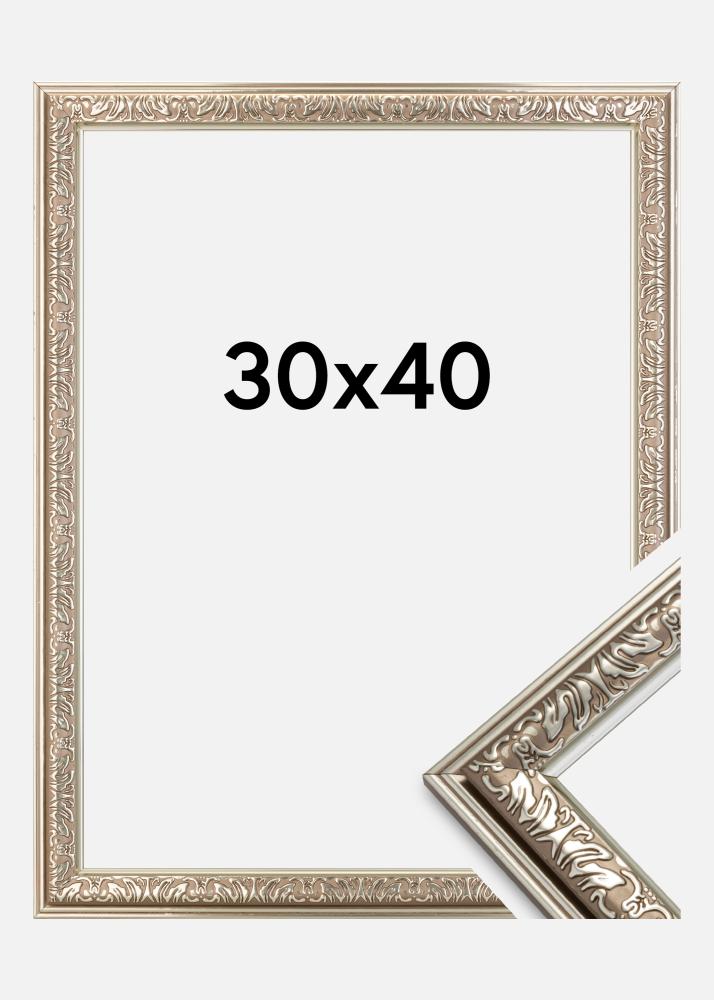 Spusťte výběr rámu »Nostalgia je elegantní stříbrný rámeček v retro stylu s pěknými ozdobami. Hodí se, když hledáte široký retro rámeček pro vaše nejkrásnější fotografie.