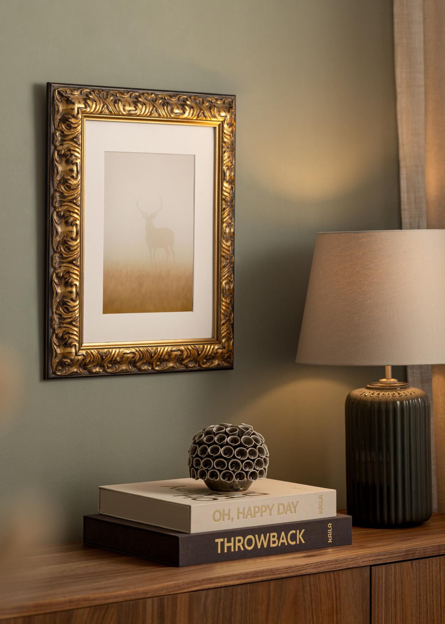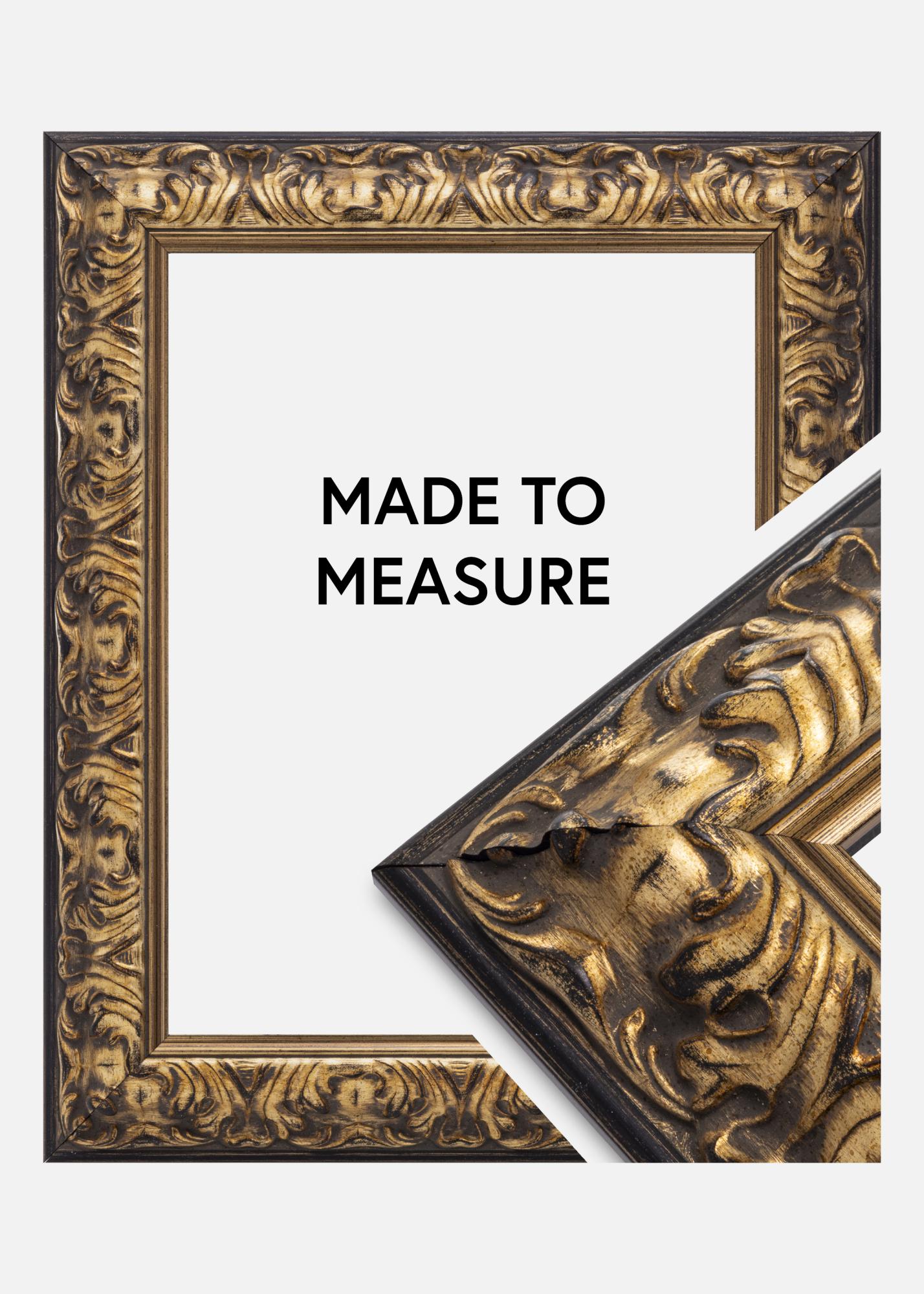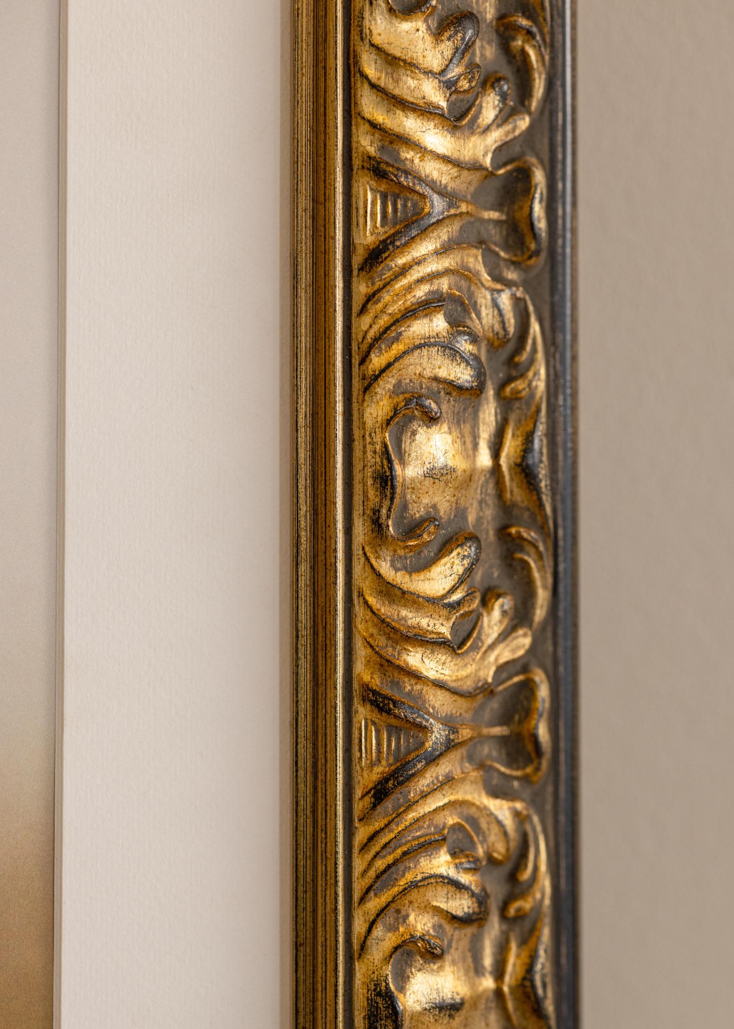 Naše na míru vyrobené fotorám Odin ve zlaté a černé je ideální volbou pro ty, kteří hledají elegantní a klasické zarámování. S jeho zlatým povrchem a černými prvky nabízí tento fotorám antický pocit, který povýší každé umělecké dílo nebo fotografii. Jeho ornamentální design vytváří krásný kontrast mezi teplým zlatem a hlubokými černými detaily, což poskytuje stylový a tradiční vzhled.