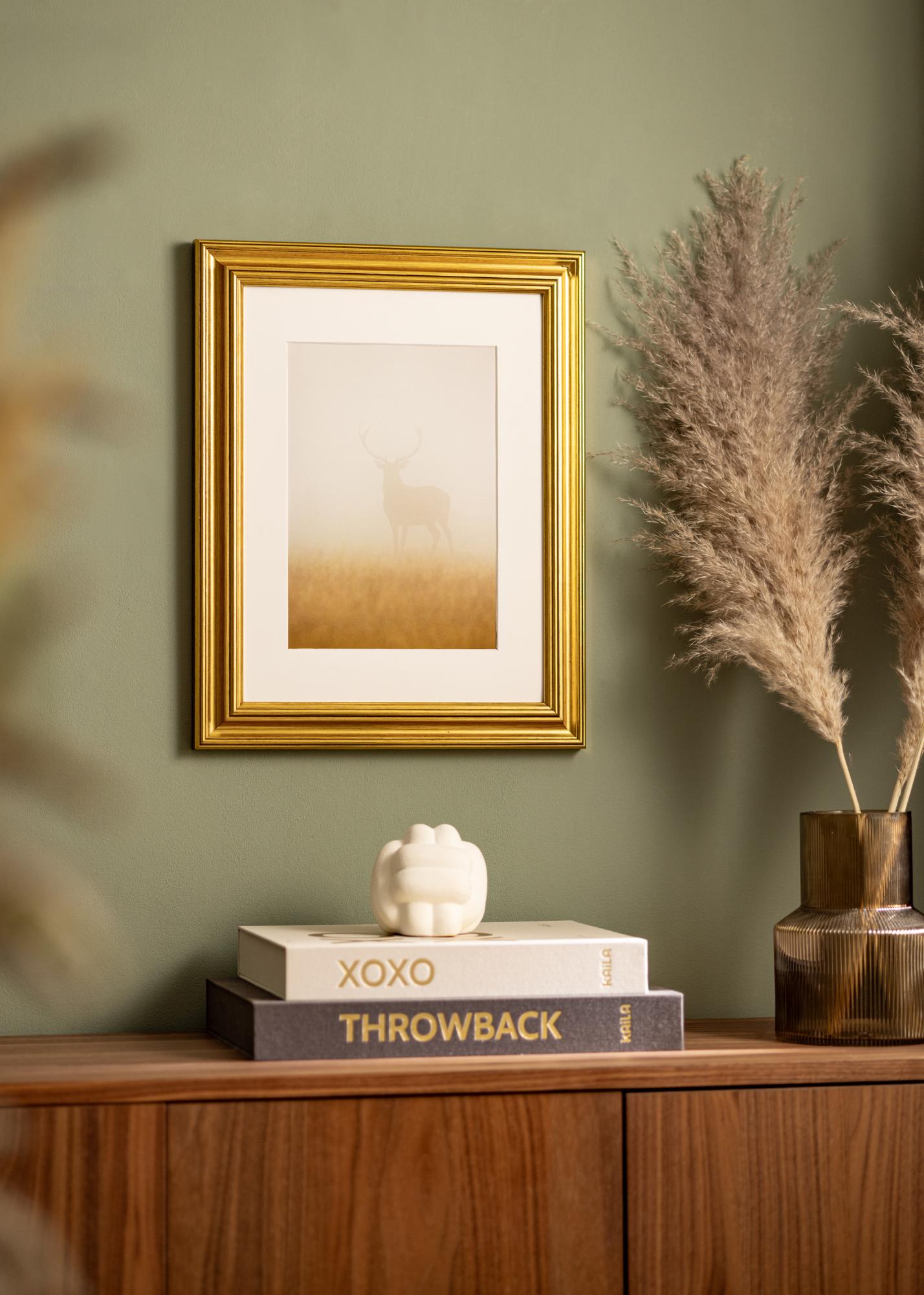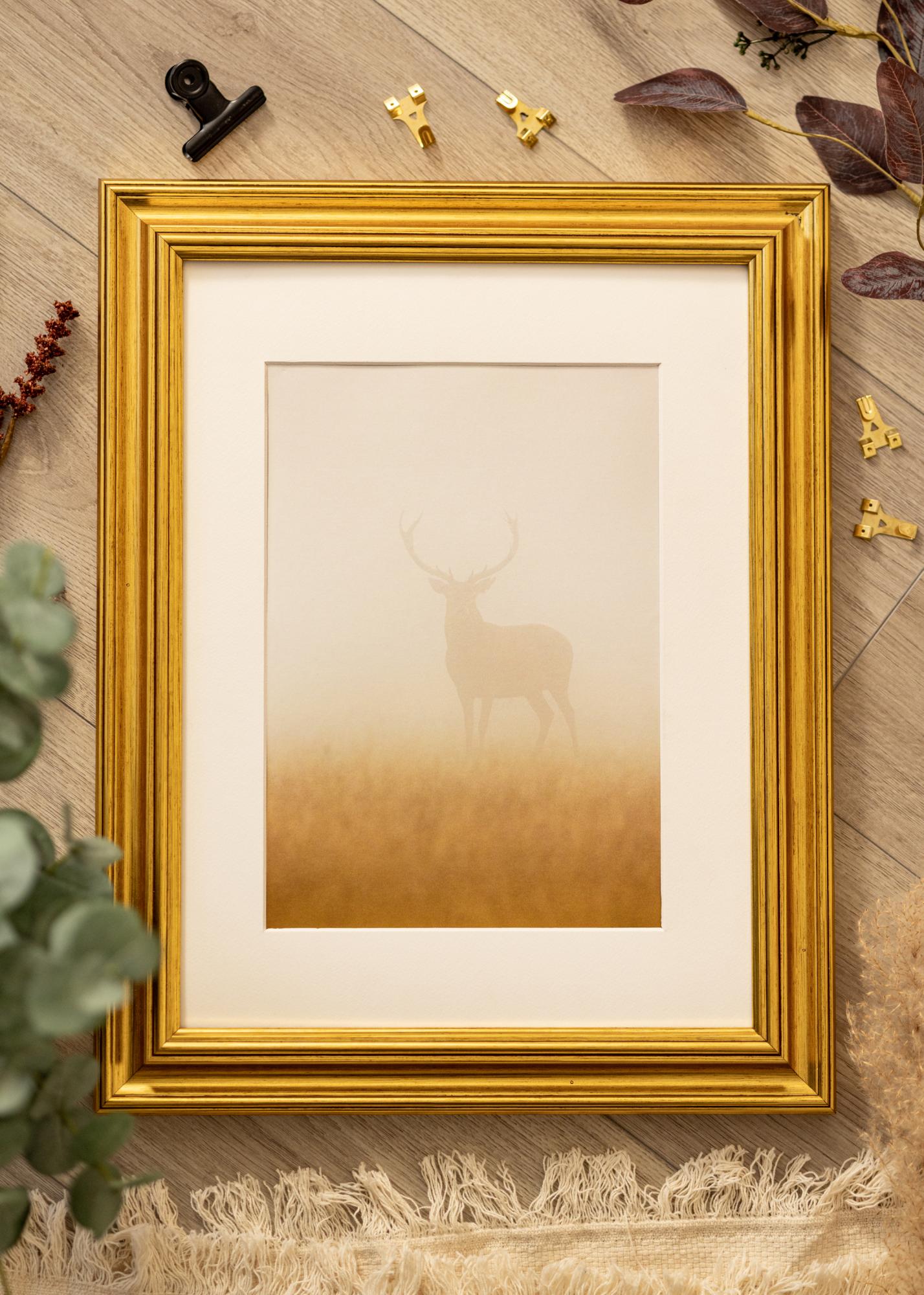 Exkluzivní klasicky profilovaný zlato zbarvený dřevěný rám s ručně malovaným vzhledem, který rámu dodává živost a krásný lesk. Stylový rám pro zarámování jak krajinné malby, tak portréty a zátiší, nebo proč ne použít pro vytvoření zajímavého kontrastu k jednoduše grafickému plakátu. Zlaté rámy se dobře hodí jak do antikem zařízených domovů, tak do městského bytu, který chce získat elegantní vzhled. Zavěste spolu několik obrazů s různými styly na zlatých rámech pro vytvoření stěny s obrazy.