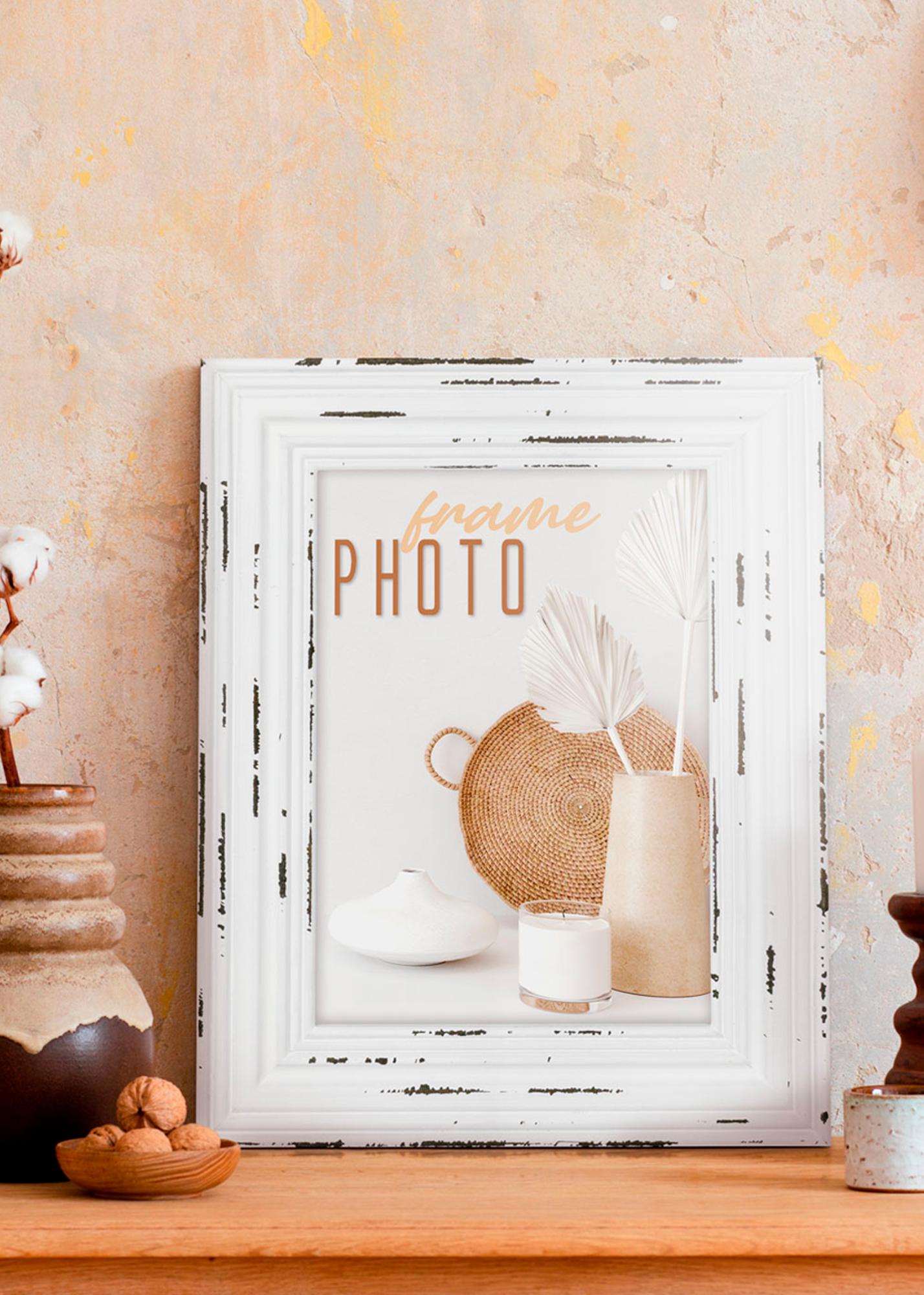 Dejte svým vzpomínkám jedinečný rám s touto okouzlující fotorámečkem ve vintage stylu. Se svými rozměry 15x20 cm dokonale zvýrazní vaše oblíbené fotografie. Odrbaný bílý povrch, doplněný tmavými prvky, dodává autentický pocit dávných časů a přidává charakter vašemu interiéru.
