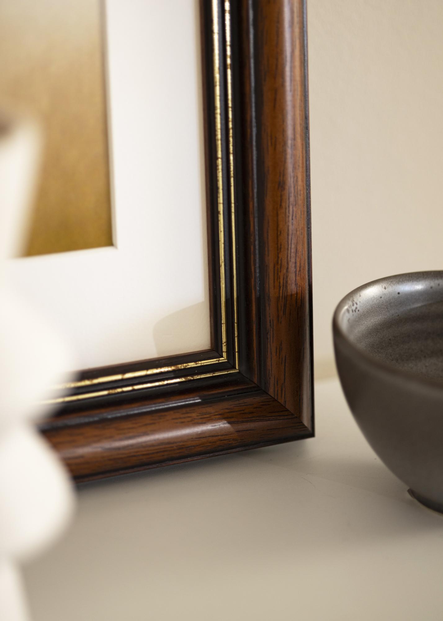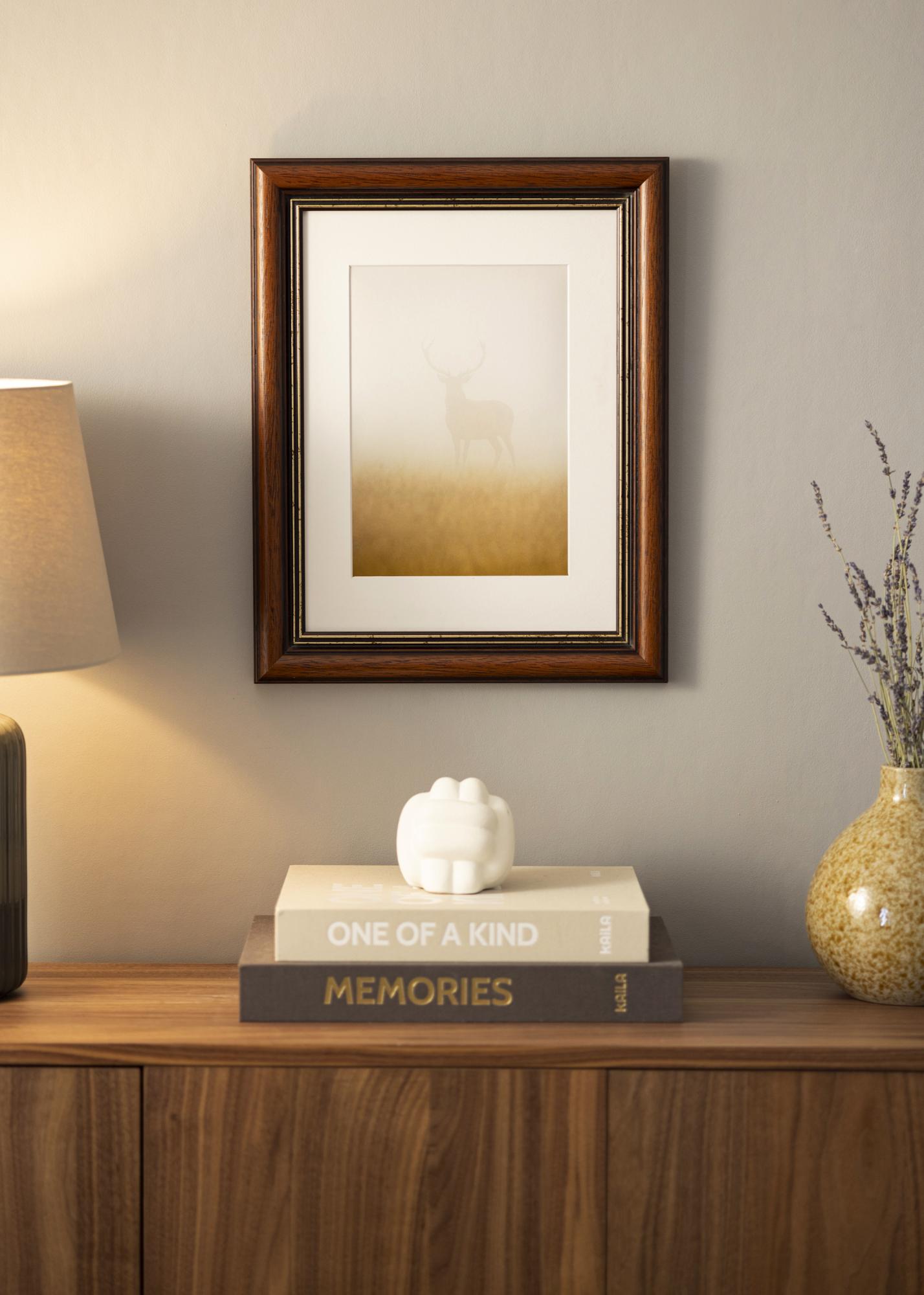 Orsa je fotorámeček klasického stylu se širokým zaobleným profilem. Základní barva rámu je hnědá s černými prvky, kombinovaná se dvěma zlatými liniemi nejblíže motivu. K rámu patří sklo a zadní deska.