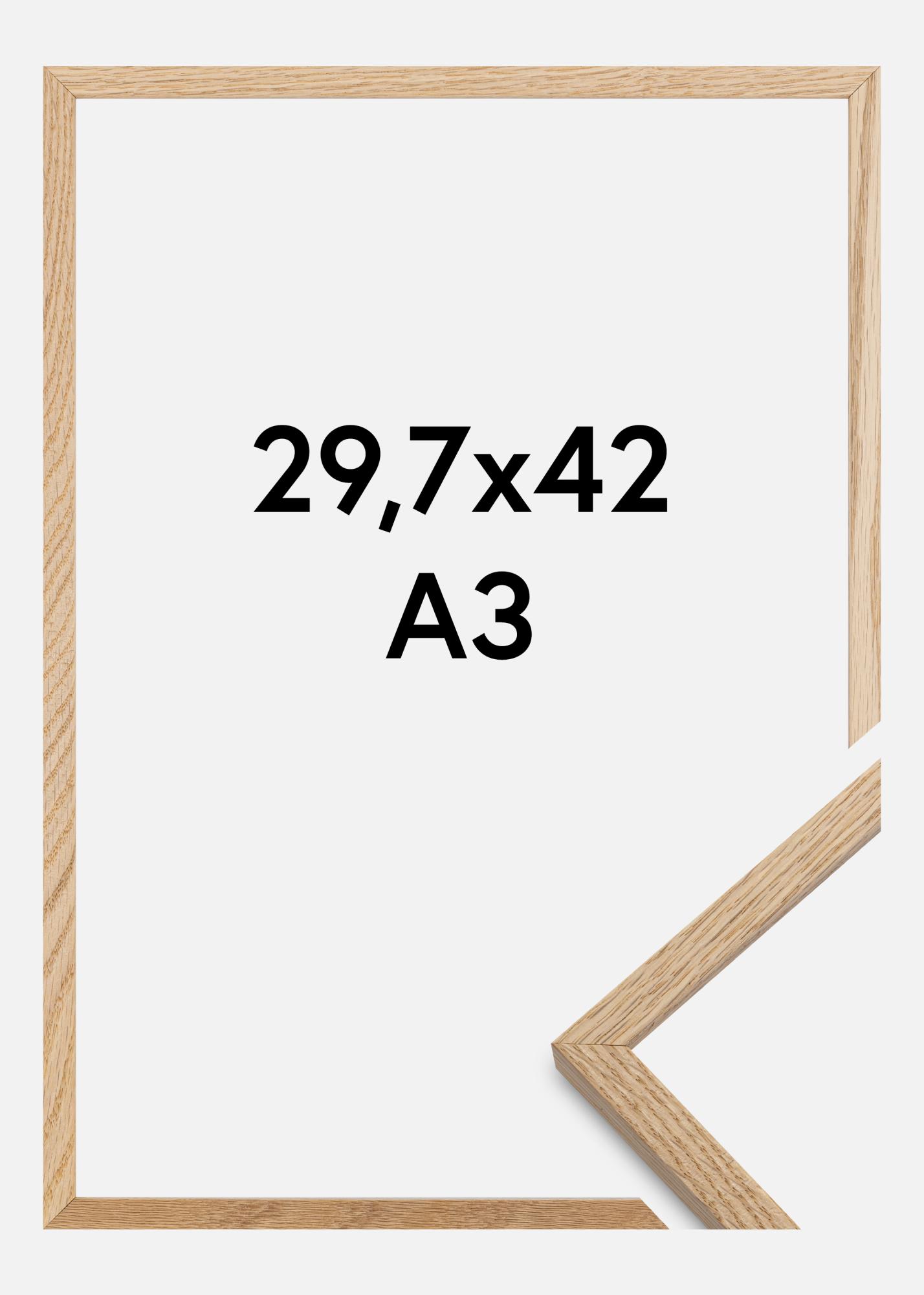 Robustní rám z dubu ve formátu A3 s čtvercovým profilem rámu. Rám je dodáván s křišťálově čistým akrylovým sklem, které je nerozbitné, což současně snižuje hmotnost rámu.