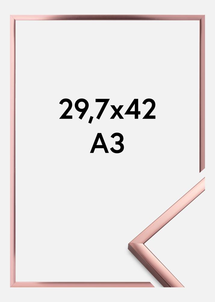 Dodejte svým plakátům a uměleckým dílům nádech elegance s naším stylovým růžově zlatým hliníkovým rámem. S rozměry rámu 29,7x42 cm dokonale sedí na rozměr A3 a stane se sofistikovaným prvkem v každé místnosti.