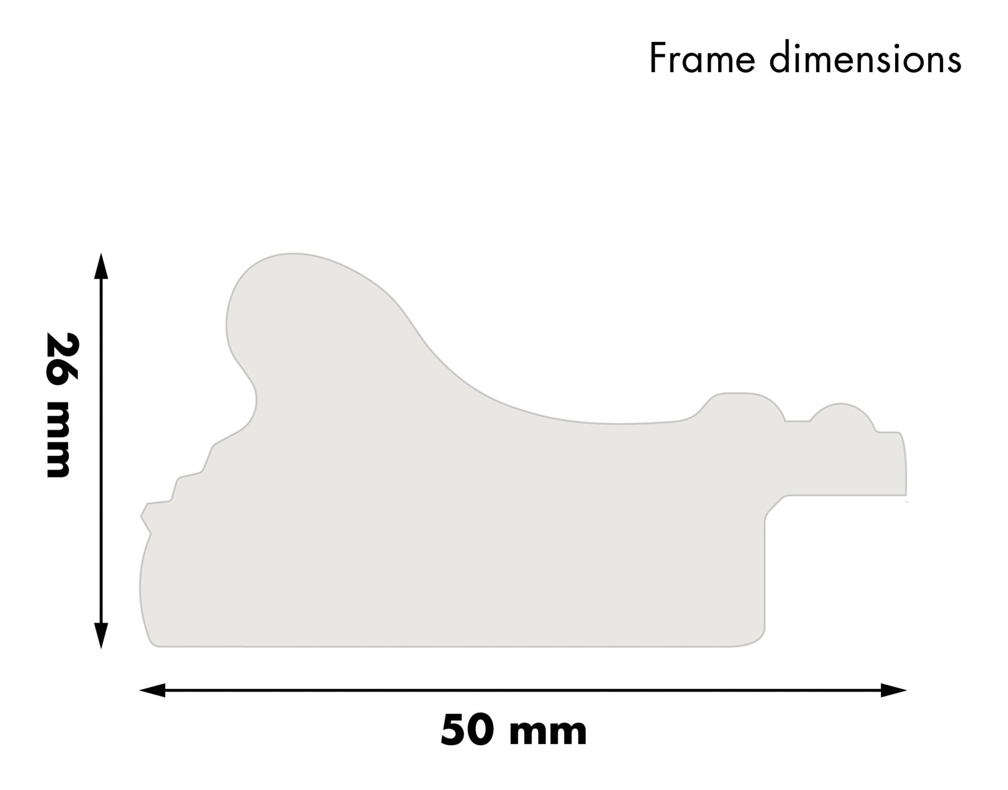 Tento rám je opatřen akrylátovým sklem – lehkou a nerozbitnou variantou skla s křišťálově čistou ostrostí. Rám na obrazy s akrylátovým sklem je tedy vhodnou volbou na místa, kde si přejete lehké zavěšení.
