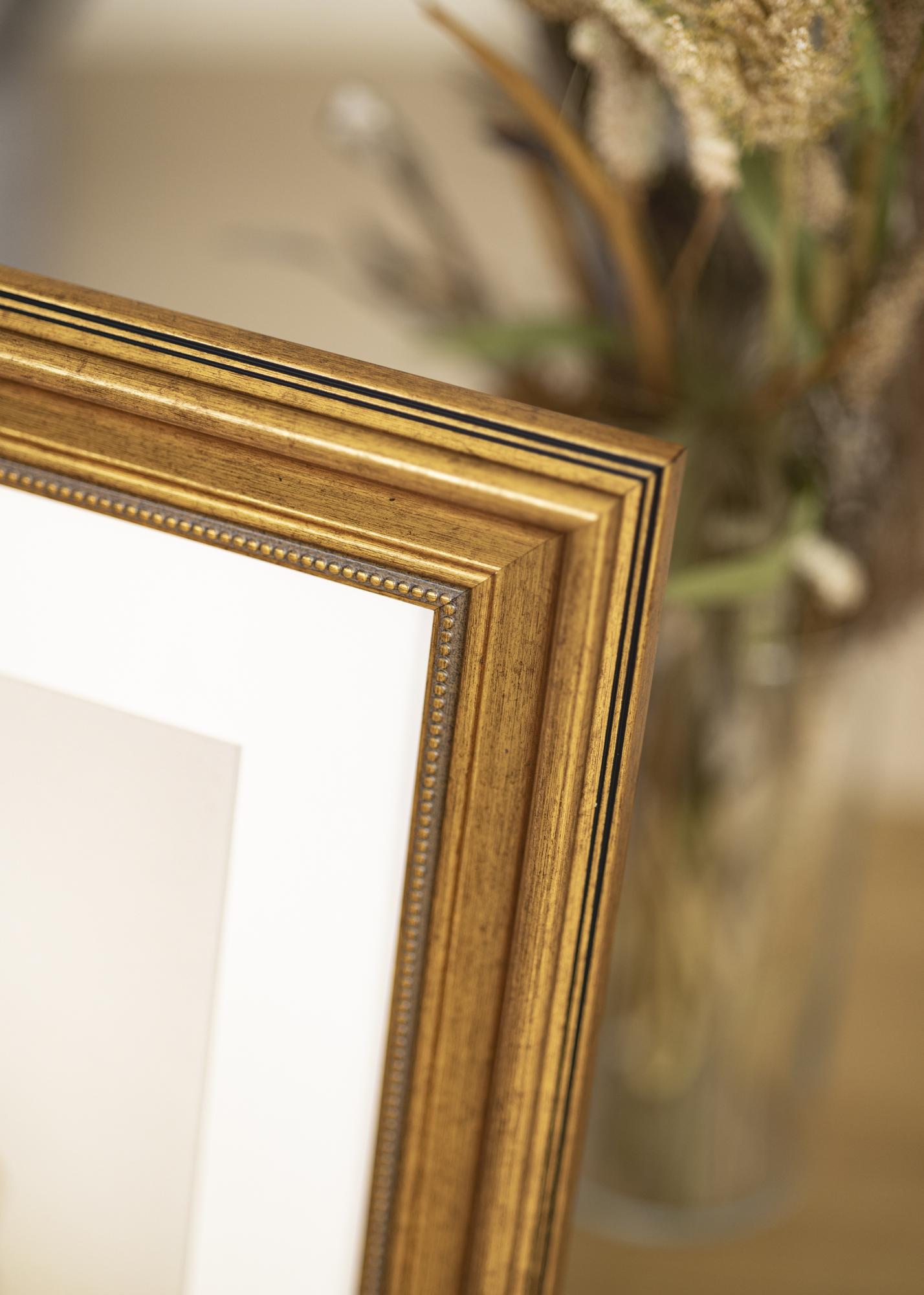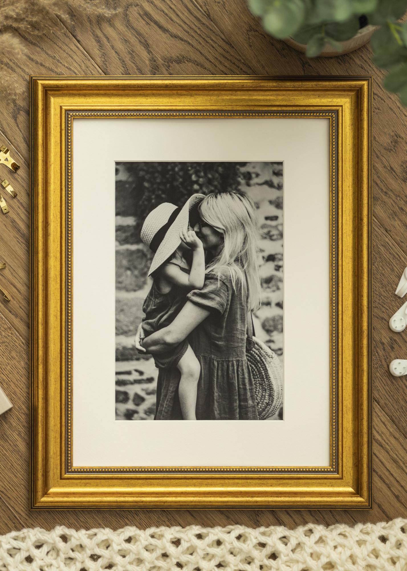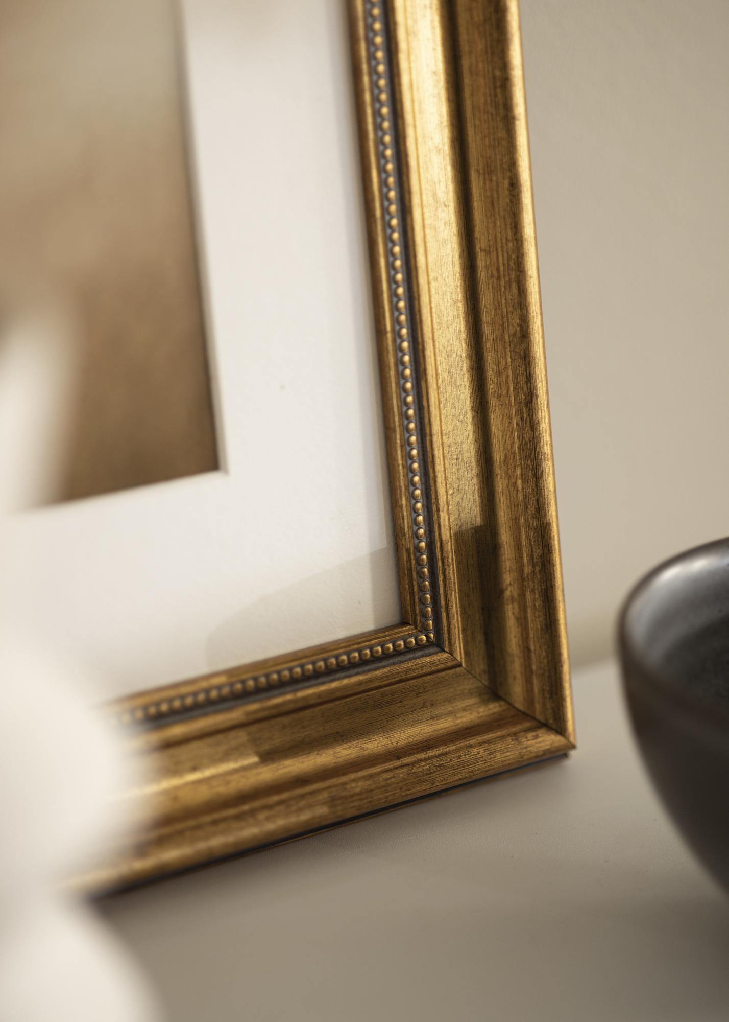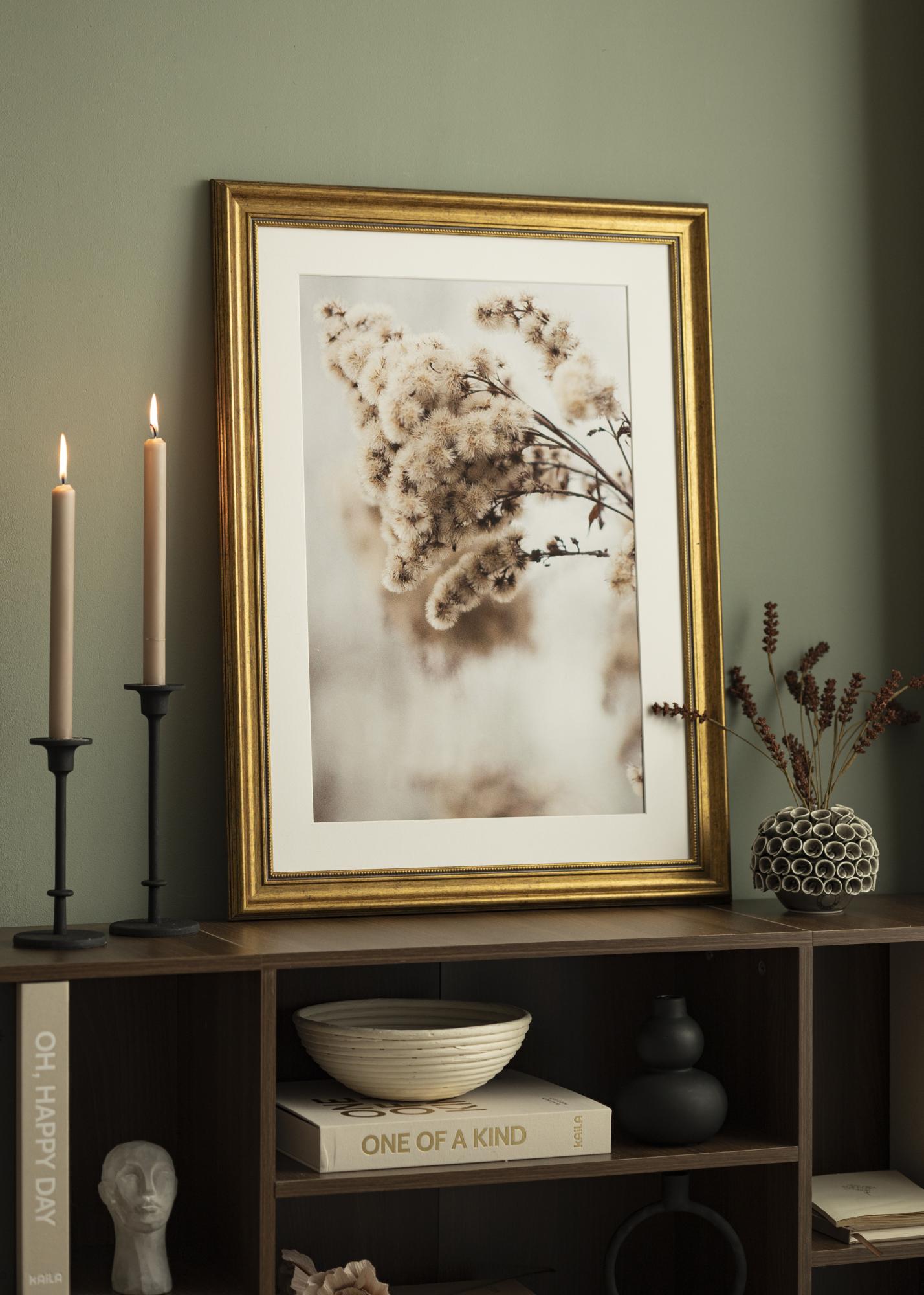 Rokoko je zlatý rám, který přináší nádherný vintage pocit všem vašim oblíbeným motivům. Rám má 50 mm široký lištu v odstínu lesklého antického zlata a krásně opotřebovaný povrch, který posiluje klasický vzhled rámu. Rám je vhodný pro osobní fotografie i pro abstraktní plakáty – a bez ohledu na to, který motiv si vyberete, můžete jej snadno umístit. Stačí uvolnit zadní část rámečku, která je upevněna malými ohebnými západkami, a poté umístit svoji nástěnnou dekoraci vedle skla rámu.