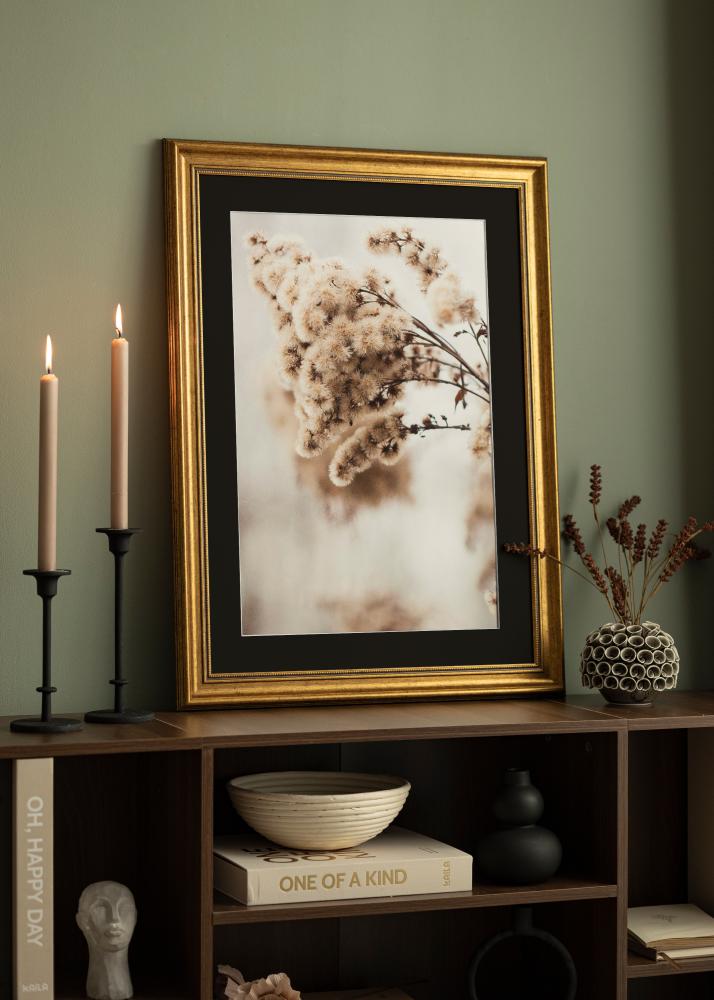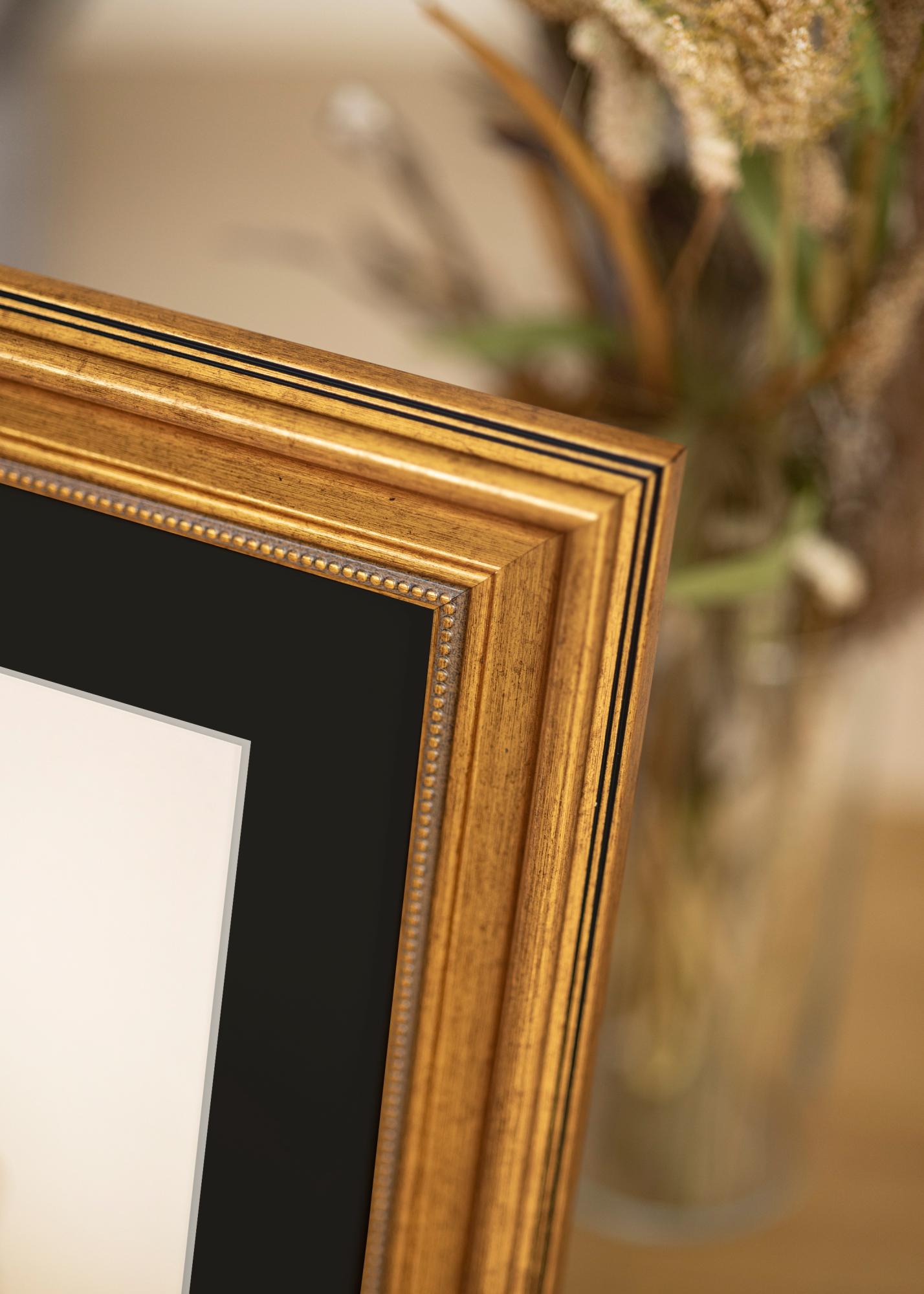 Přeměňte svou oblíbenou fotografii nebo umělecké dílo na skutečný střed pozornosti s tímto elegantním zlatým rámečkem s černou paspartou. Sofistikovaná kombinace zlata a černé vytváří luxusní pocit, který doplňuje a zvýrazňuje obraz uvnitř. S velikostí obrazu 25x35 cm je snadné najít ten pravý motiv pro tento rámeček.