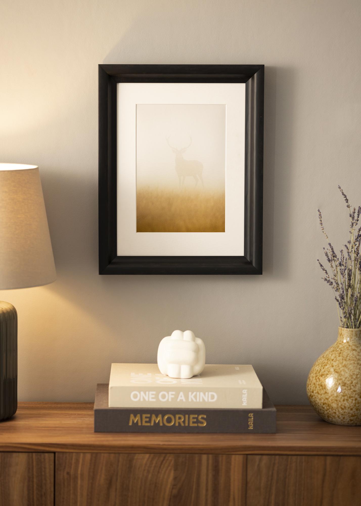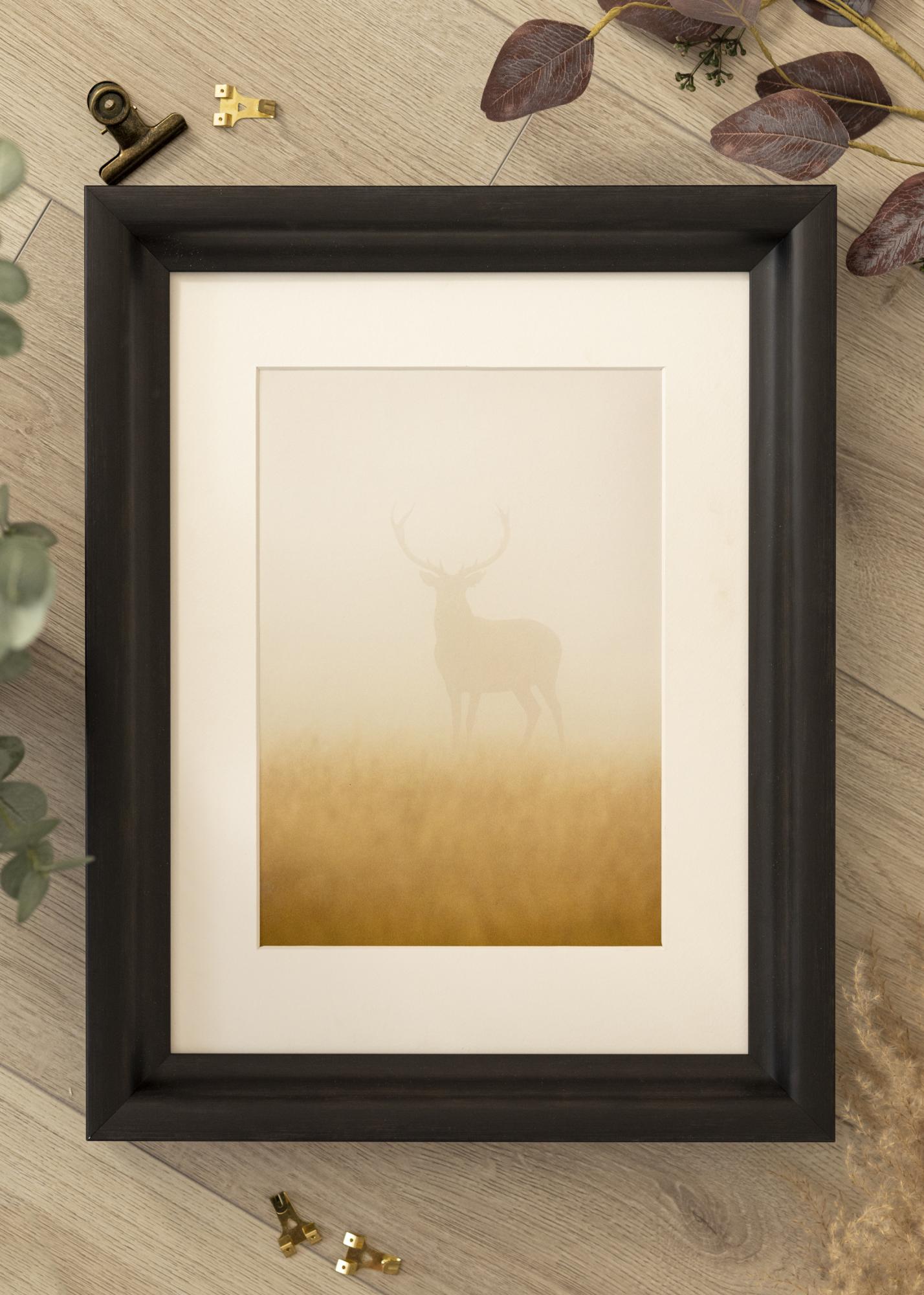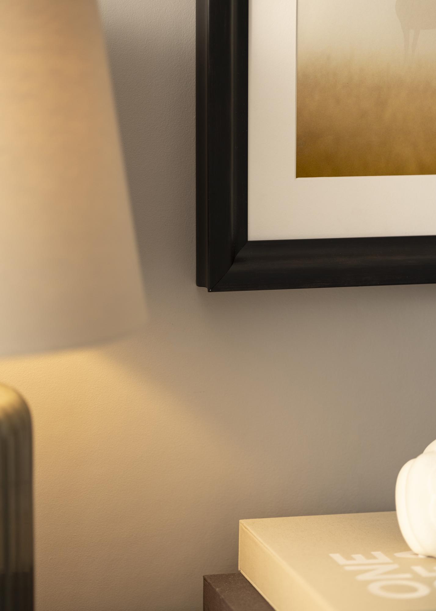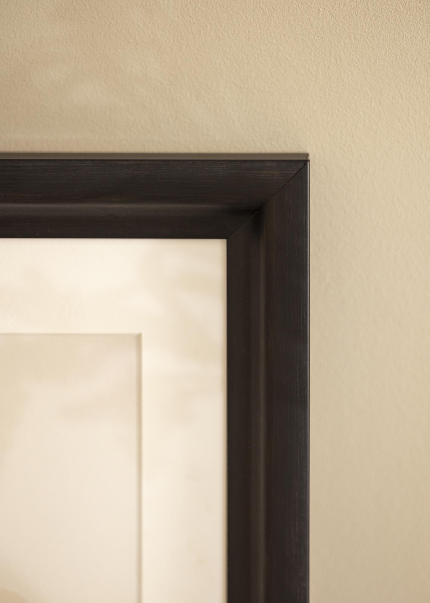 Tradiční rámeček na obrázky v tmavě černohnědé barvě, která je spíše černá než hnědá. Vynikající volba, když hledáte na míru vyrobený rámeček v tmavém odstínu, kde prosvítá struktura dřeva.