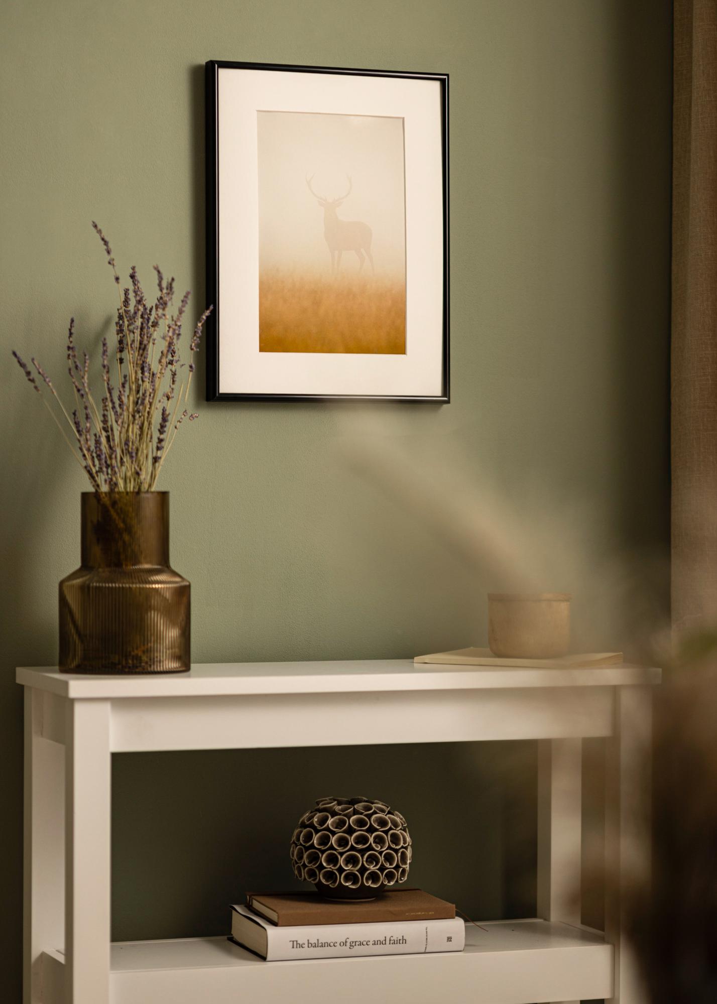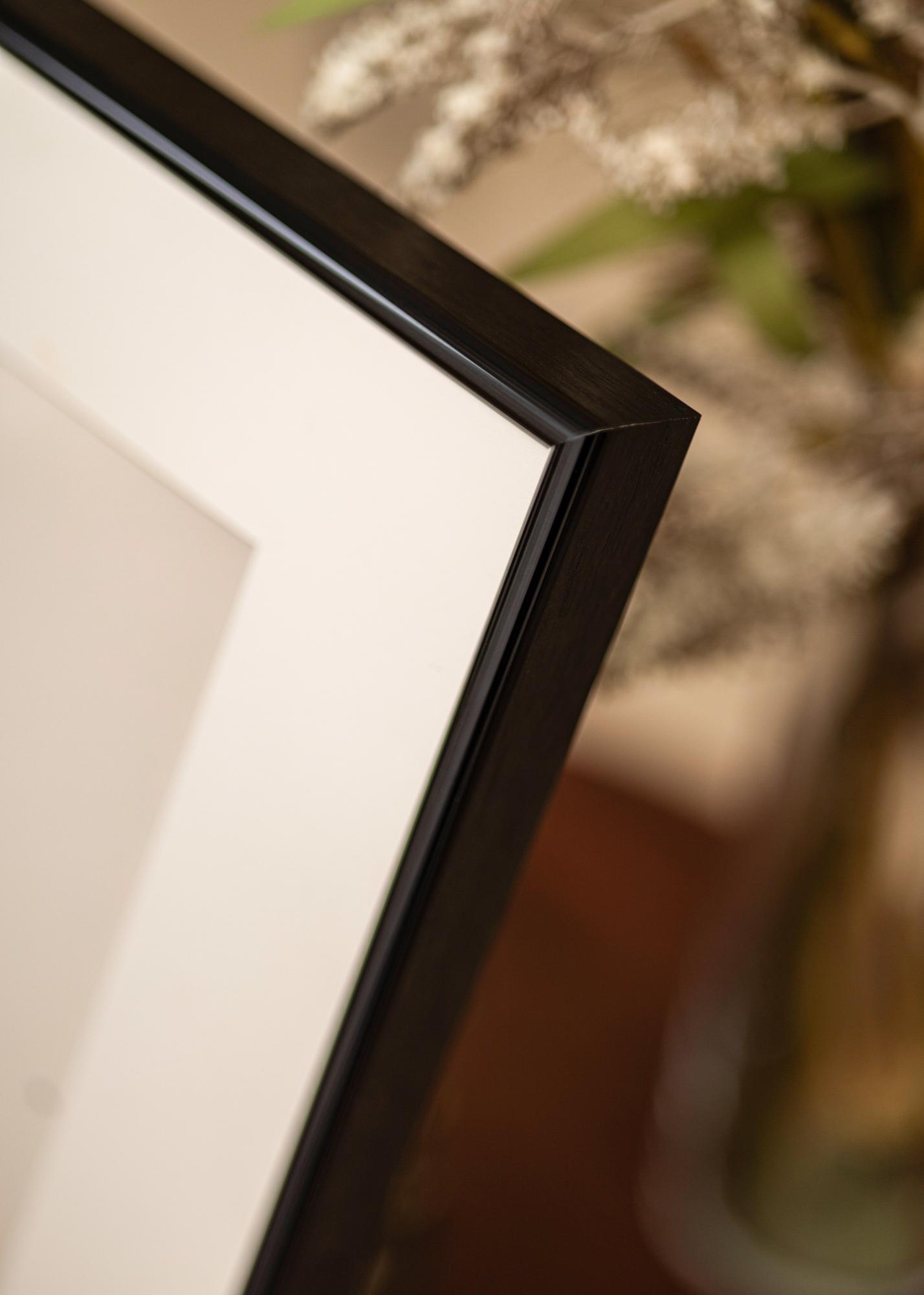 Moderní vysoce lesklý rám v černé barvě s kartáčovanými stranami, který má hluboký profil 26 mm. To způsobuje, že motiv vystupuje ze zdi a vytváří lahodný 3D efekt. Perfektní, když hledáte jednoduchý obrazový rám, který dodá vašim obrázkům elegantní rámování.
