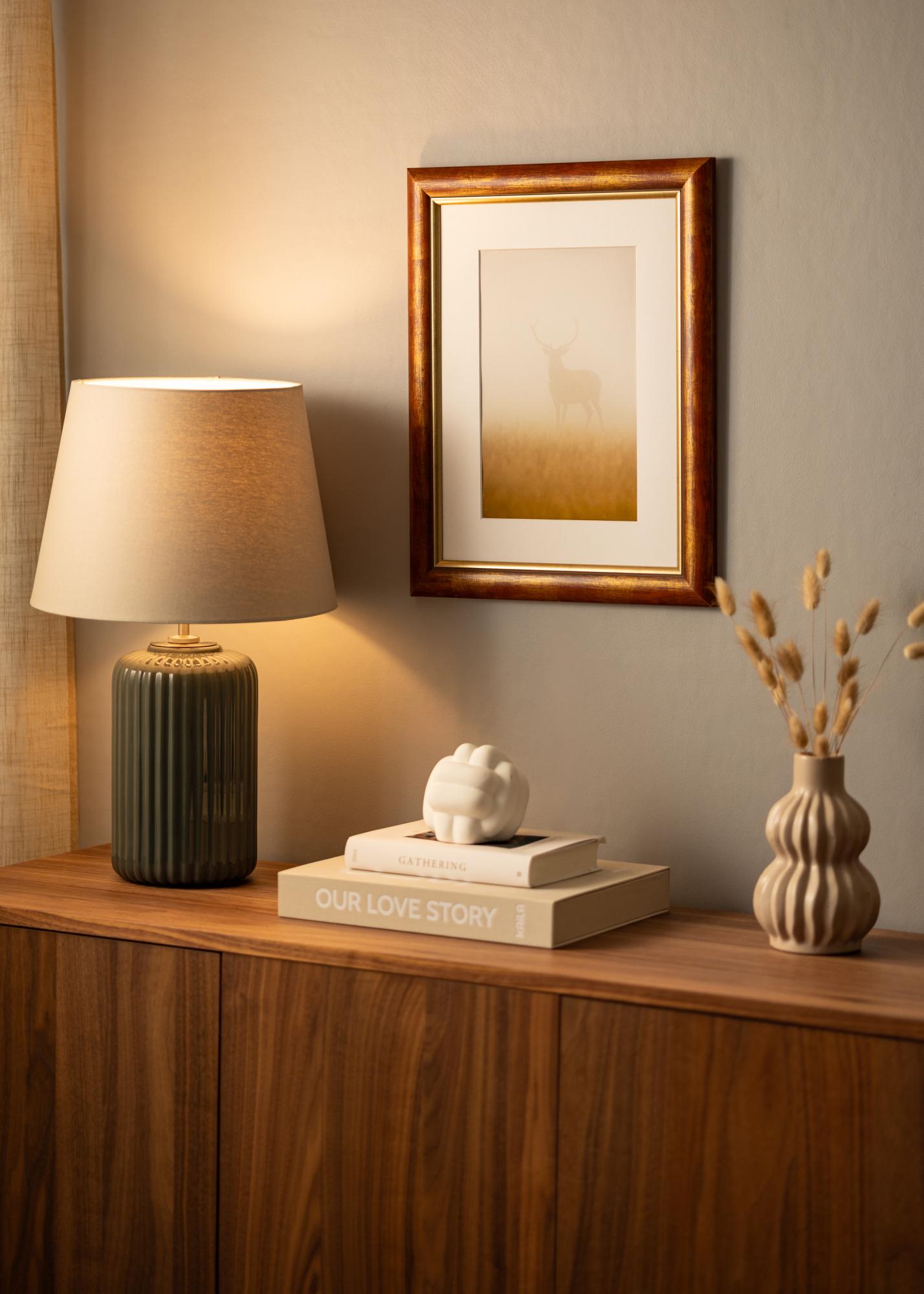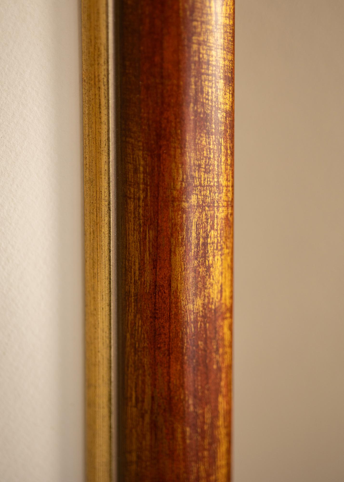 Nadčasový dřevěný rám vyrobený ve Finsku s elegantním červenohnědým povrchem ze dřeva s pozlaceným okrajem poblíž motivu. Dodává motivu harmonický pocit. Rám má široký profil o celých 41 mm a hloubku 19 mm, což dodává navíc hloubku zarámování.