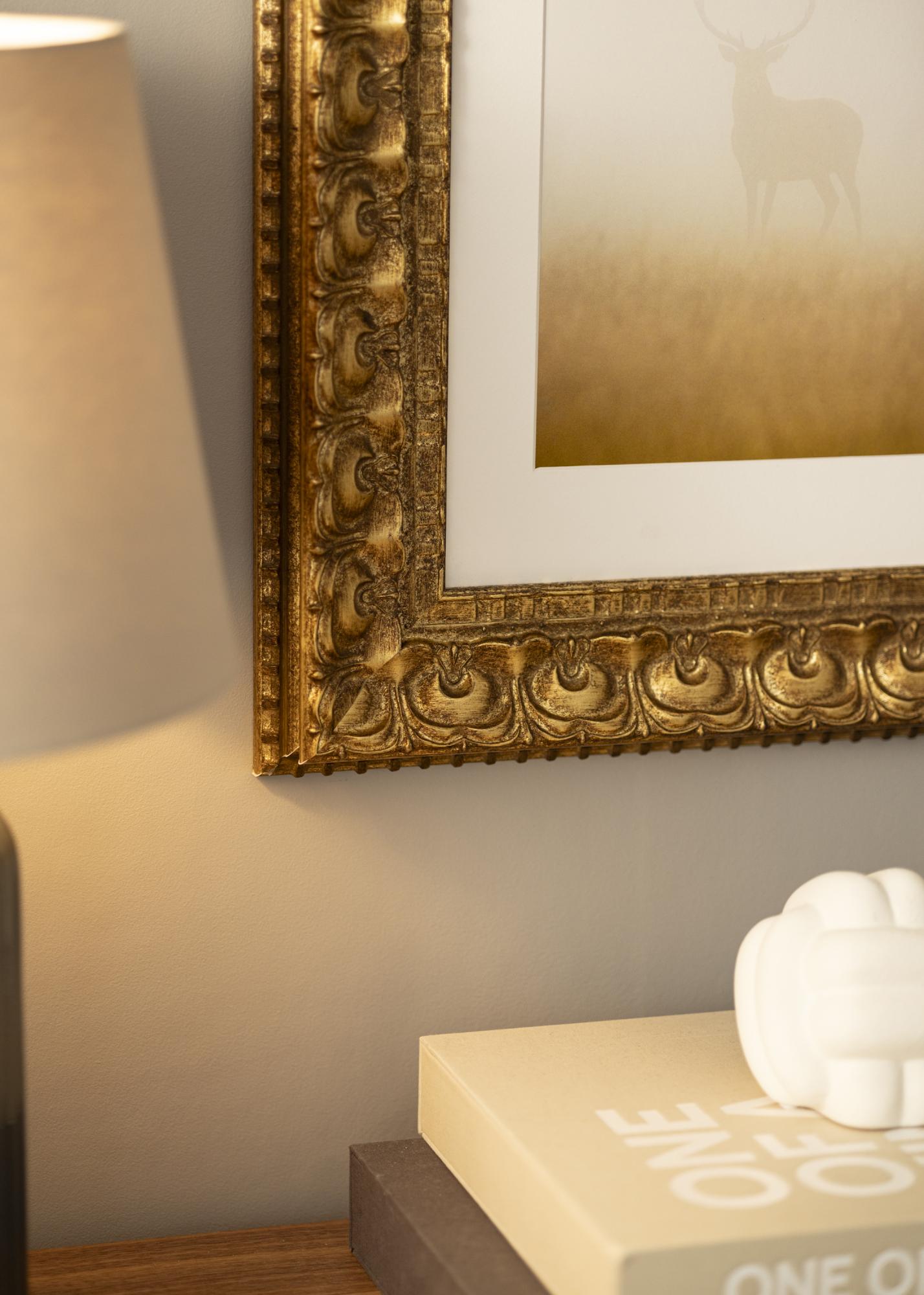 Přeměňte své fotografie na umělecká díla s naším exkluzivním obrazovým rámem Skokloster Zlato. Tento fotorám je navržen tak, aby vašim vzpomínkám dodal elegantní rámec díky své klasické zlaté úpravě a bohatě zdobenému profilu. Antický vzhled je posílen patinovaným povrchem, což rámu dodává nadčasový a sofistikovaný pocit, který se perfektně hodí jak do moderního, tak do tradičního prostředí.