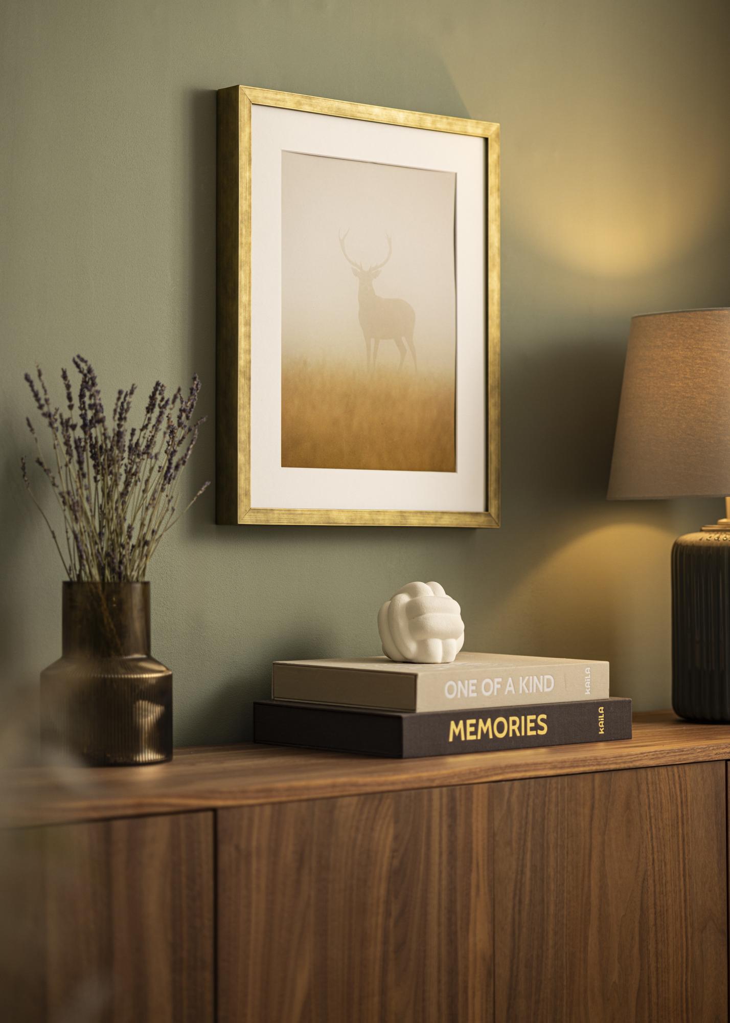 Rám má šířku lišty 20 mm a hloubku 39 mm, což mu dává robustní a solidní pocit. Vyrobený z borovice, tento rám je zároveň trvanlivý a lehký, což usnadňuje jeho manipulaci a zavěšení. Elegantní design dělá ze Somerset Guld všestrannou volbu, která se hodí stejně dobře do klasických i moderních interiérů.