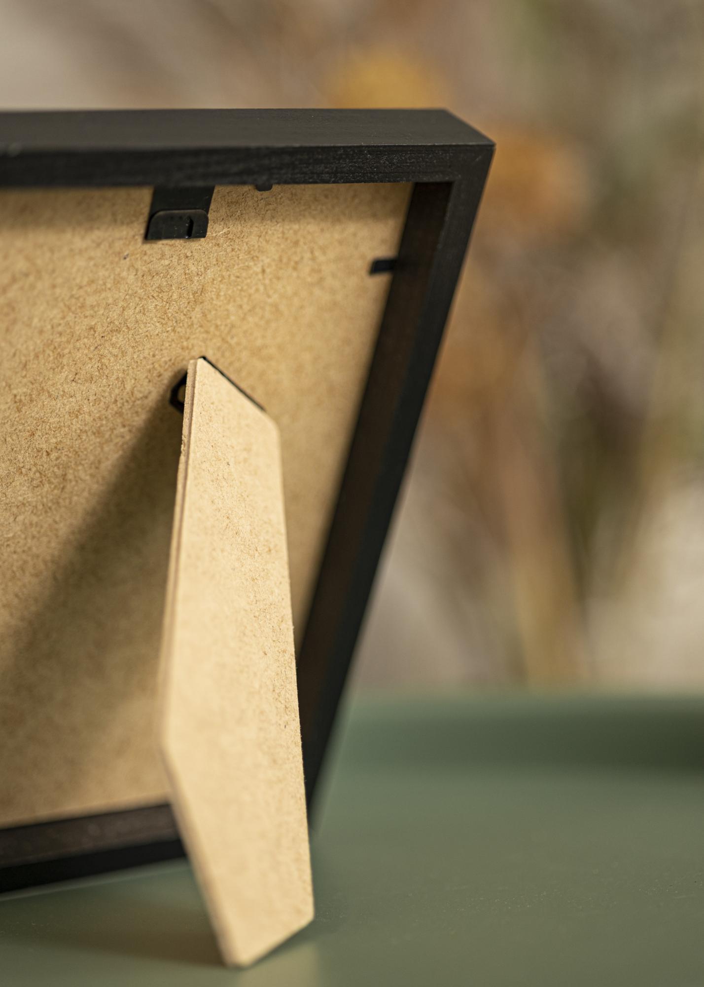 Soul Černá je moderní dřevěný rámeček, jehož široký proužek o šířce 13,5 mm vytváří velký kontrast mezi obrazem a stěnou. Je ideální pro ty, kteří hledají rámeček, který klade důraz na motiv a přitahuje pozornost k obrazu jako celku. Široký, hranatý profil vytváří velmi elegantní výraz, který je posílen natřenou černou barvou. Zadní strana rámečku je vyrobena z hnědé MDF a je opatřena závěsy, které vám umožní pověsit rámeček jak horizontálně, tak vertikálně. Snadno můžete vložit svůj obraz tím, že ohnete kovové kolíky, které drží zadní stranu na místě.