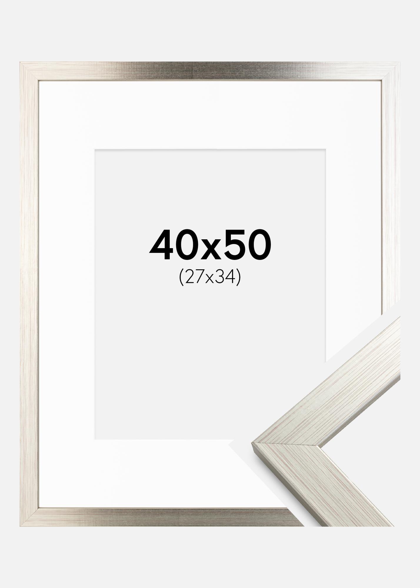 Rám Stríbrná Wood 40x50 cm - Pasparta Bílá 28x35 cm