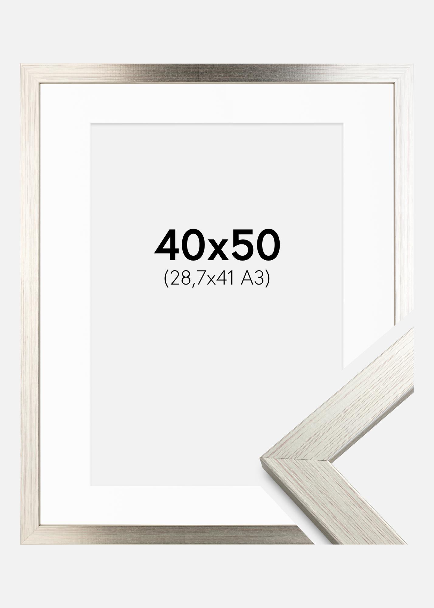 Rám Stríbrná Wood 40x50 cm - Pasparta Bílá 29,7x42 cm (A3)