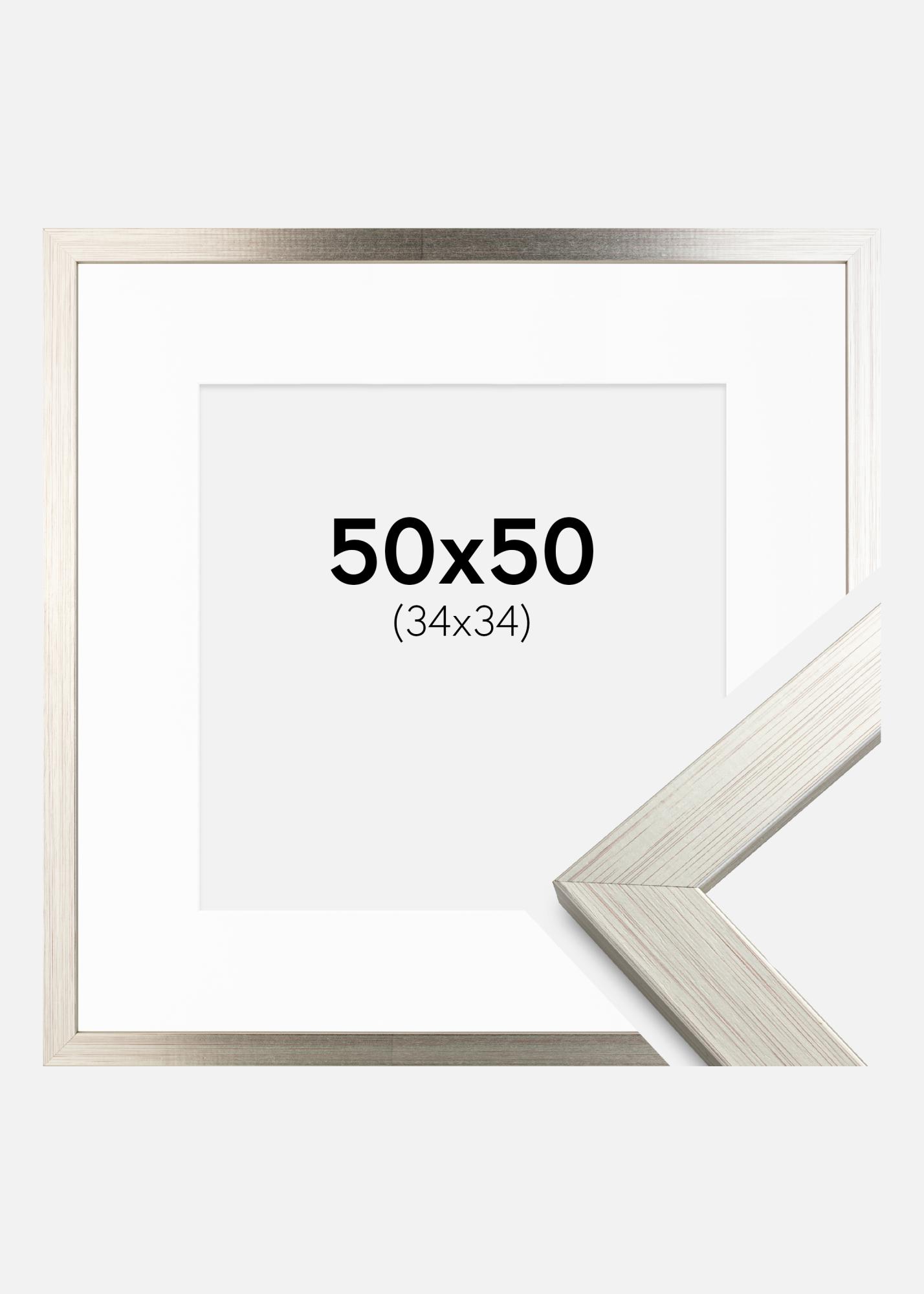 Rám Stríbrná Wood 50x50 cm - Pasparta Bílá 35x35 cm