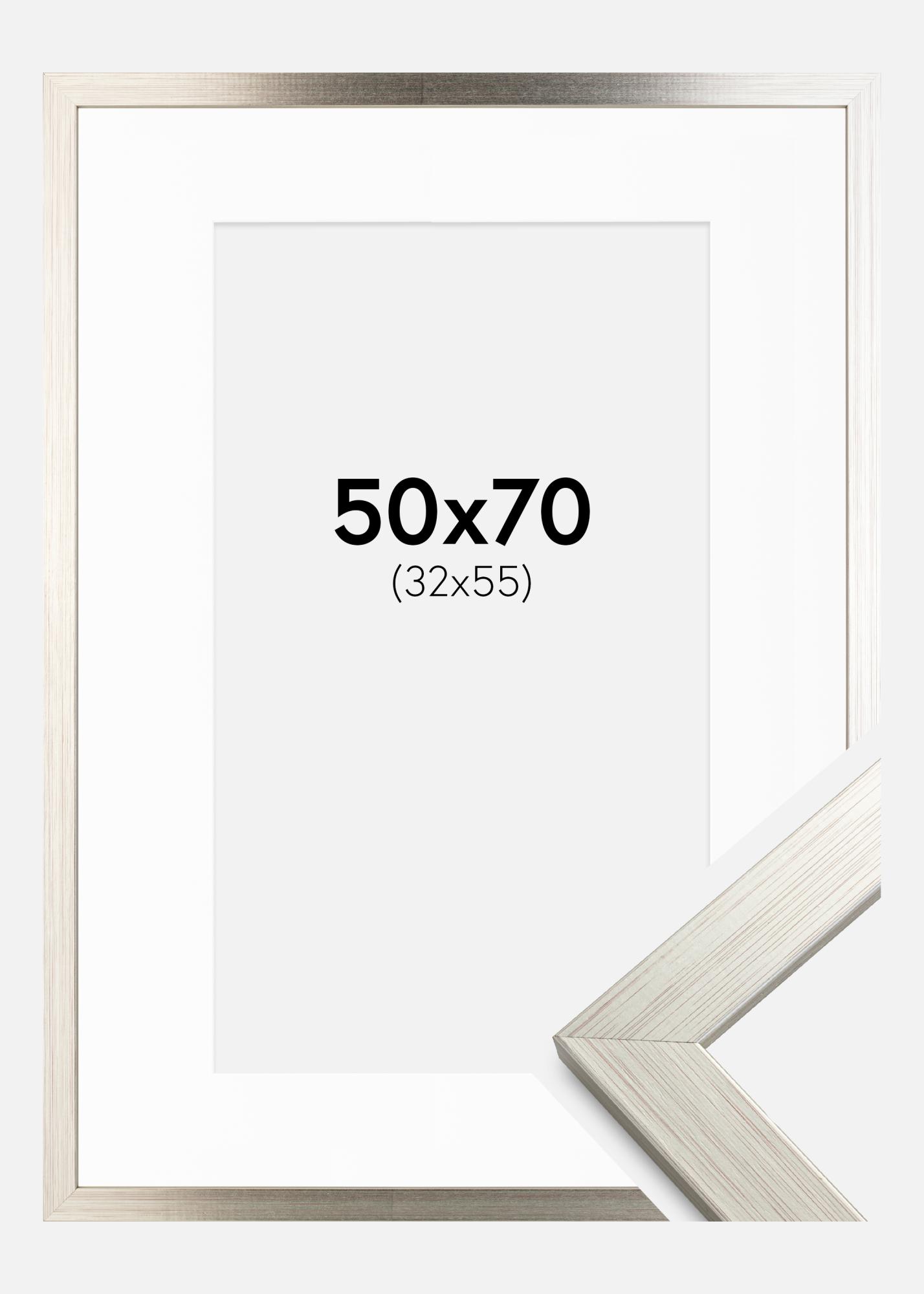 Rám Stríbrná Wood 50x70 cm - Pasparta Bílá 33x56 cm