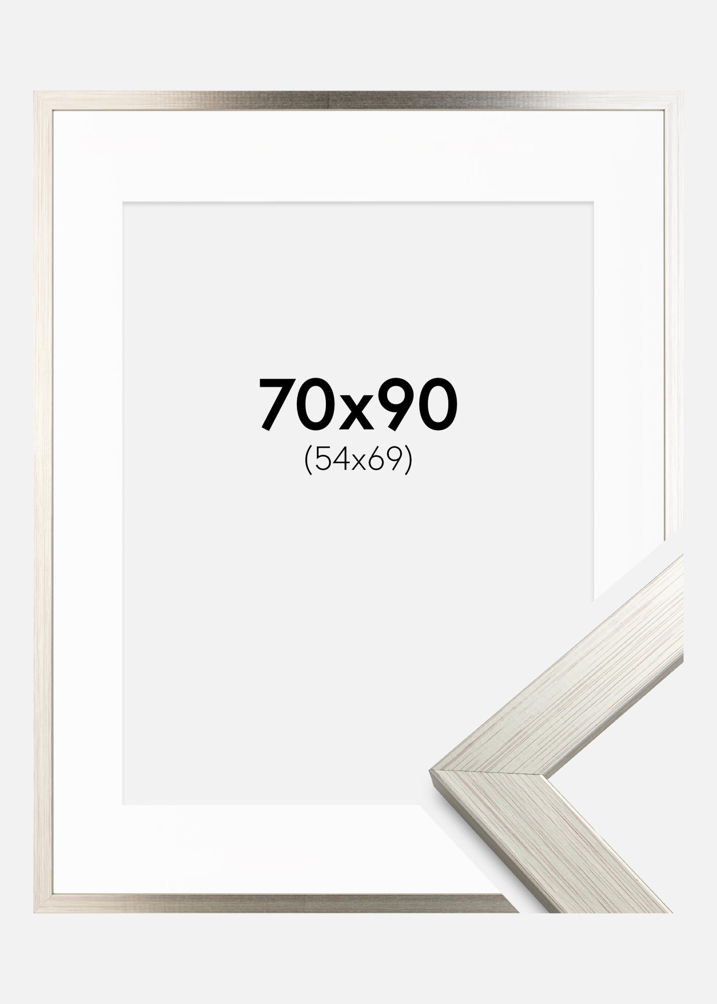 Rám Stríbrná Wood 70x90 cm - Pasparta Bílá 55x70 cm