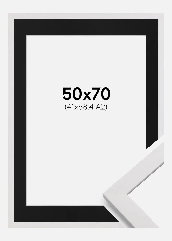 Rám Stylové Bílá 50x70 cm - Pasparta Cerná 42x59,4 cm (A2)