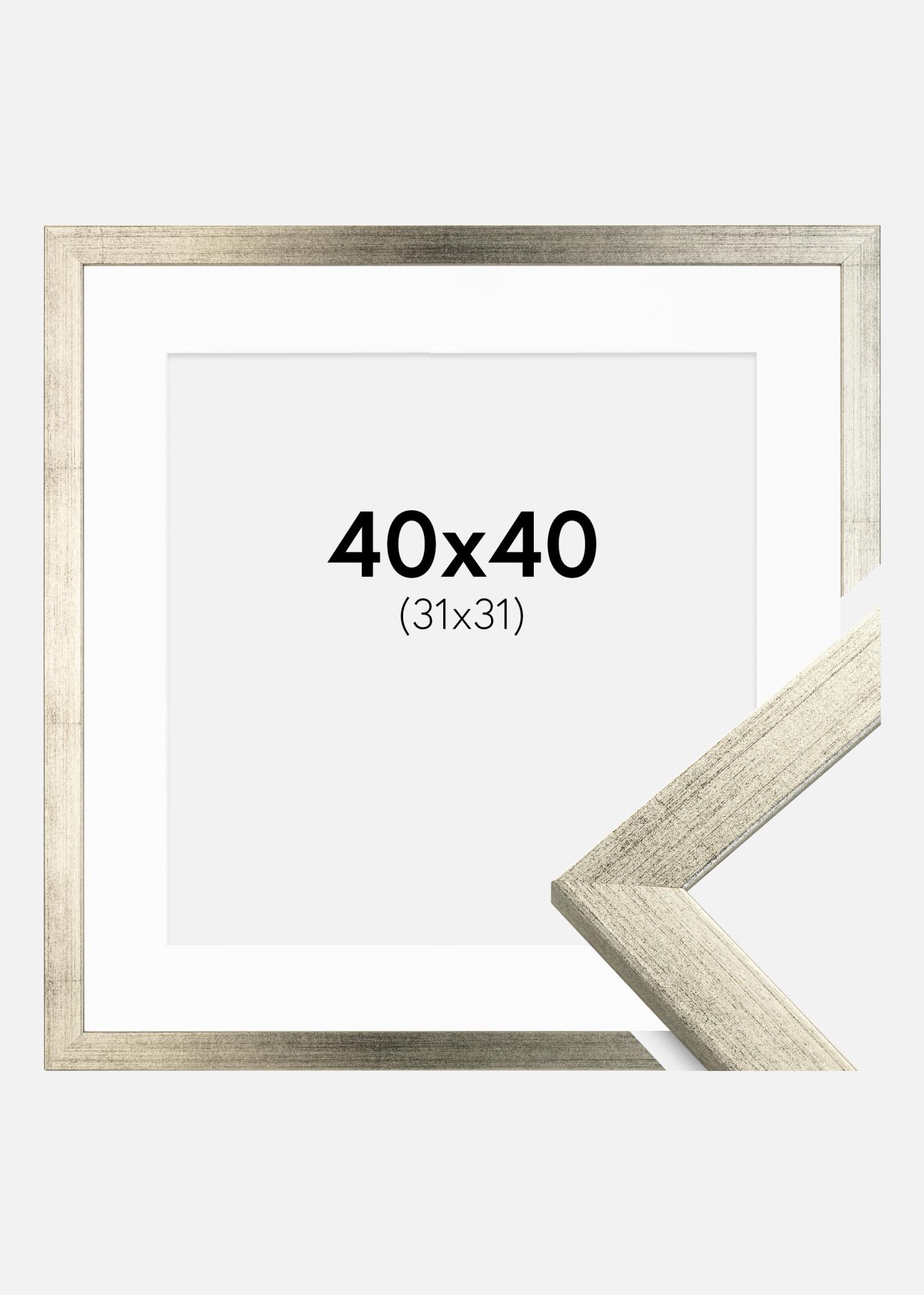Rám Stylové Stríbrná 40x40 cm - Pasparta Bílá 32x32 cm