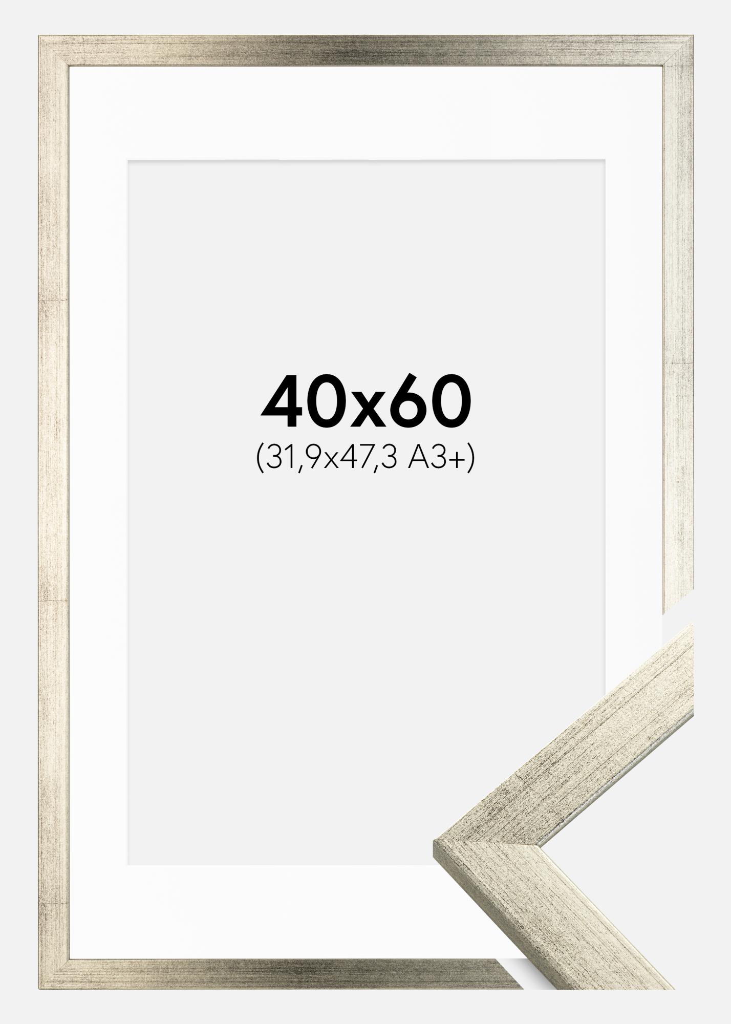 Rám Stylové Stríbrná 40x60 cm - Pasparta Bílá 32,9x48,3 cm (A3+)