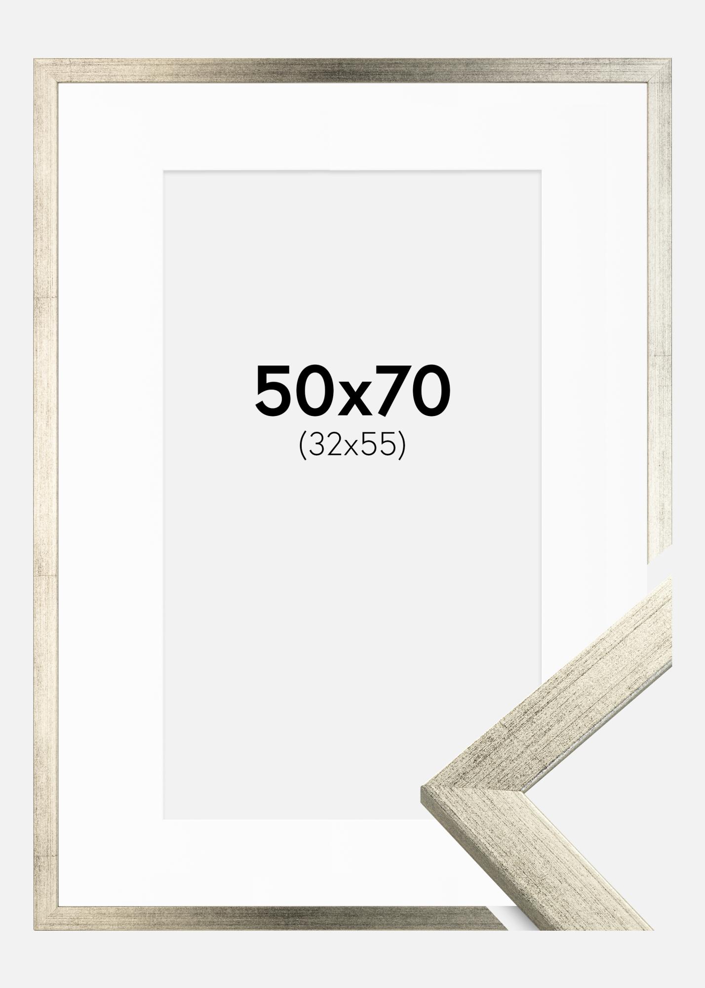 Rám Stylové Stríbrná 50x70 cm - Pasparta Bílá 33x56 cm