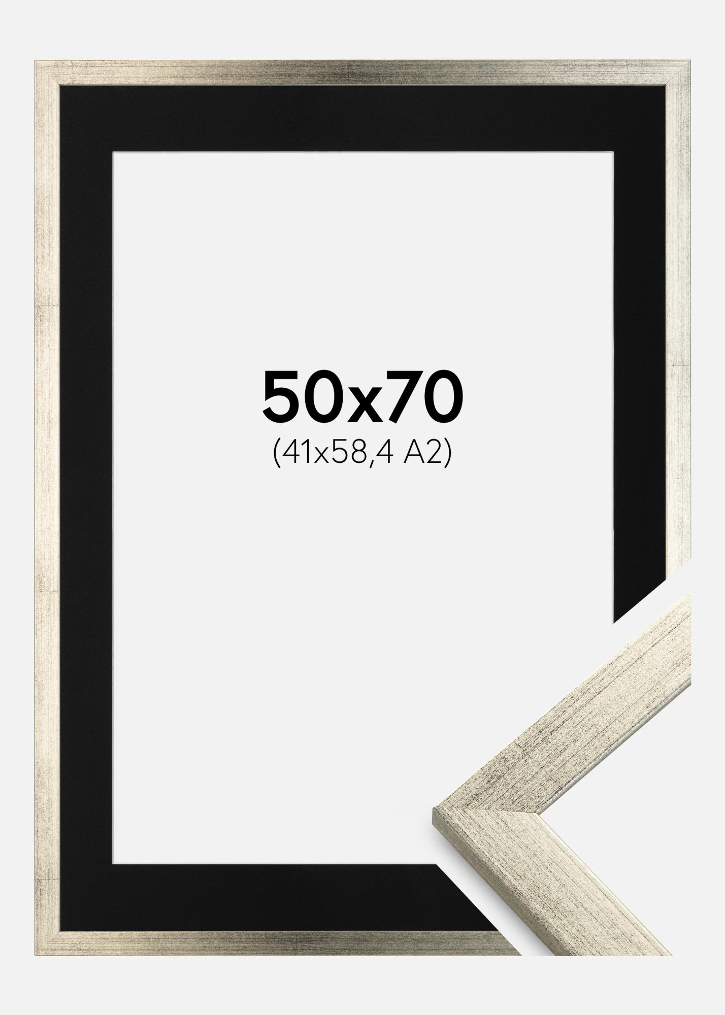 Rám Stylové Stríbrná 50x70 cm - Pasparta Cerná 42x59,4 cm (A2)