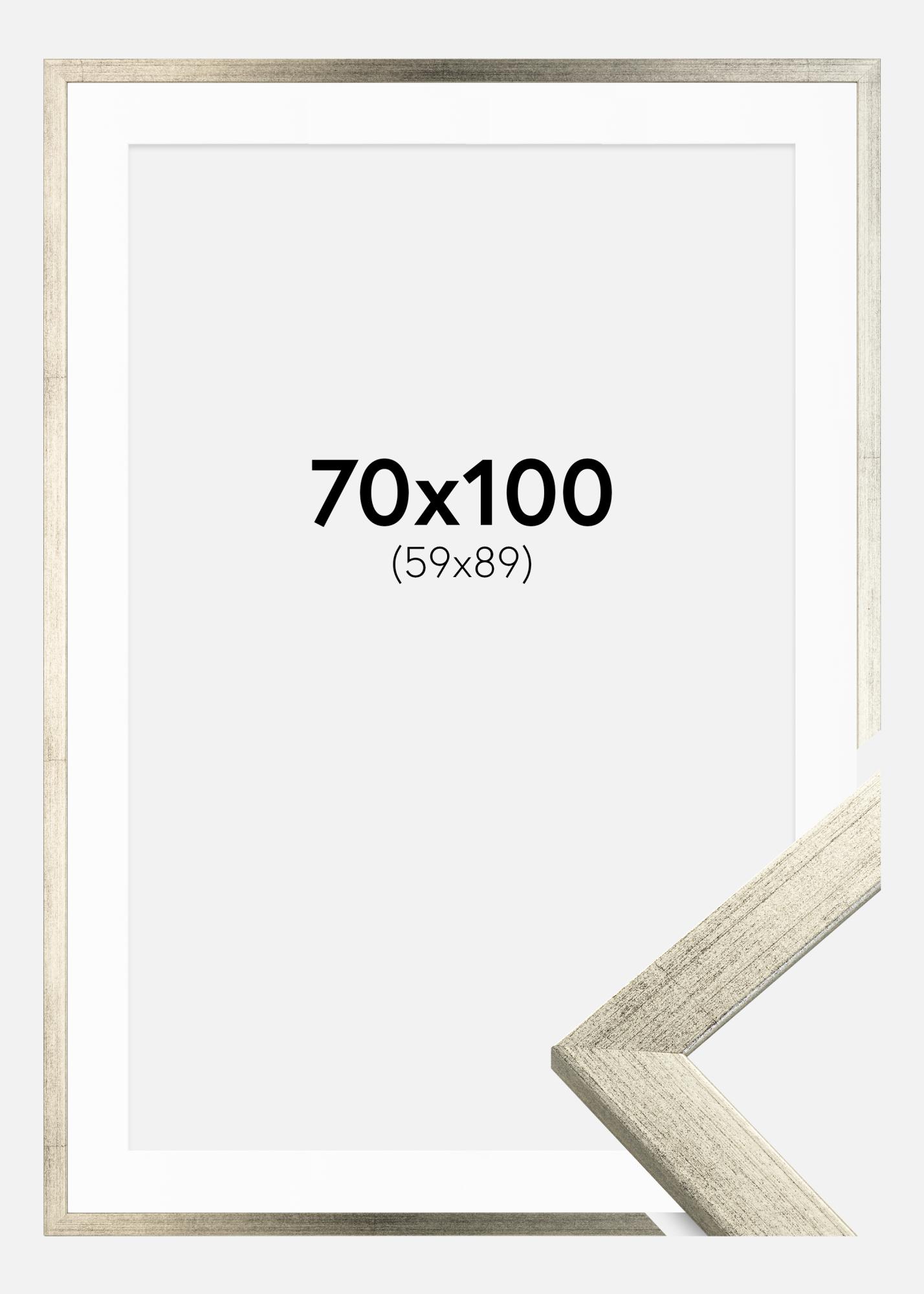 Rám Stylové Stríbrná 70x100 cm - Pasparta Bílá 60x90 cm