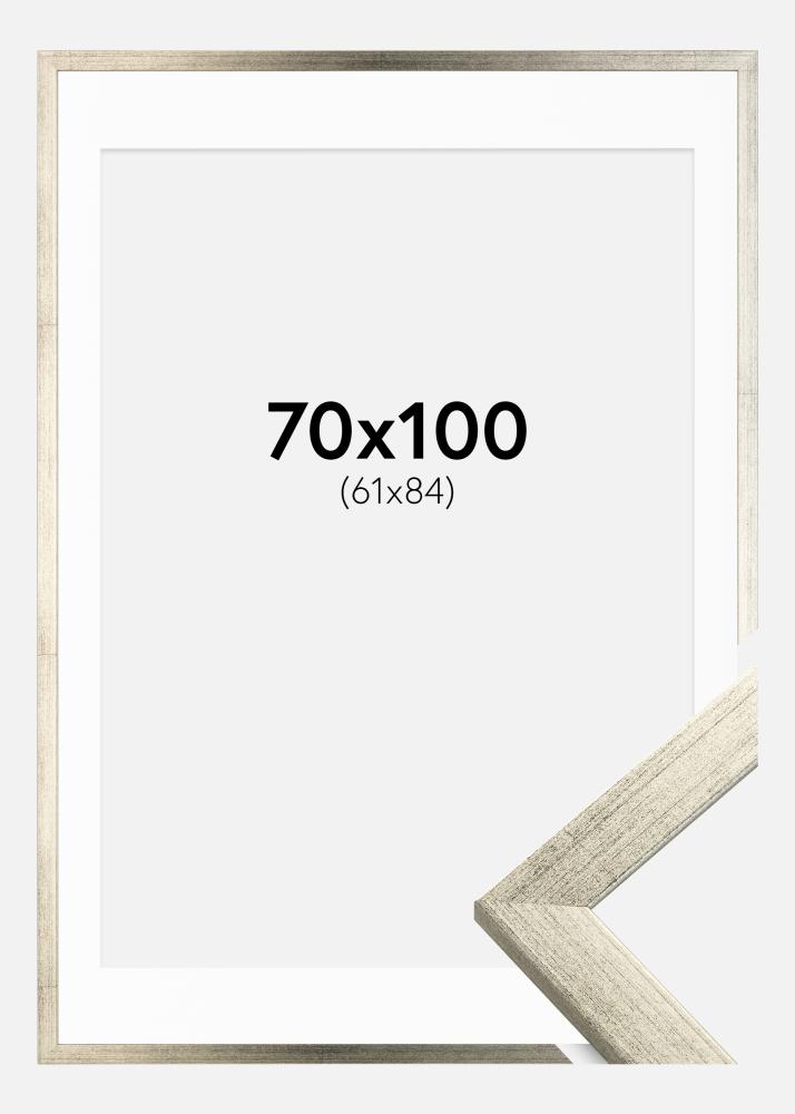 Rám Stylové Stríbrná 70x100 cm - Pasparta Bílá 62x85 cm