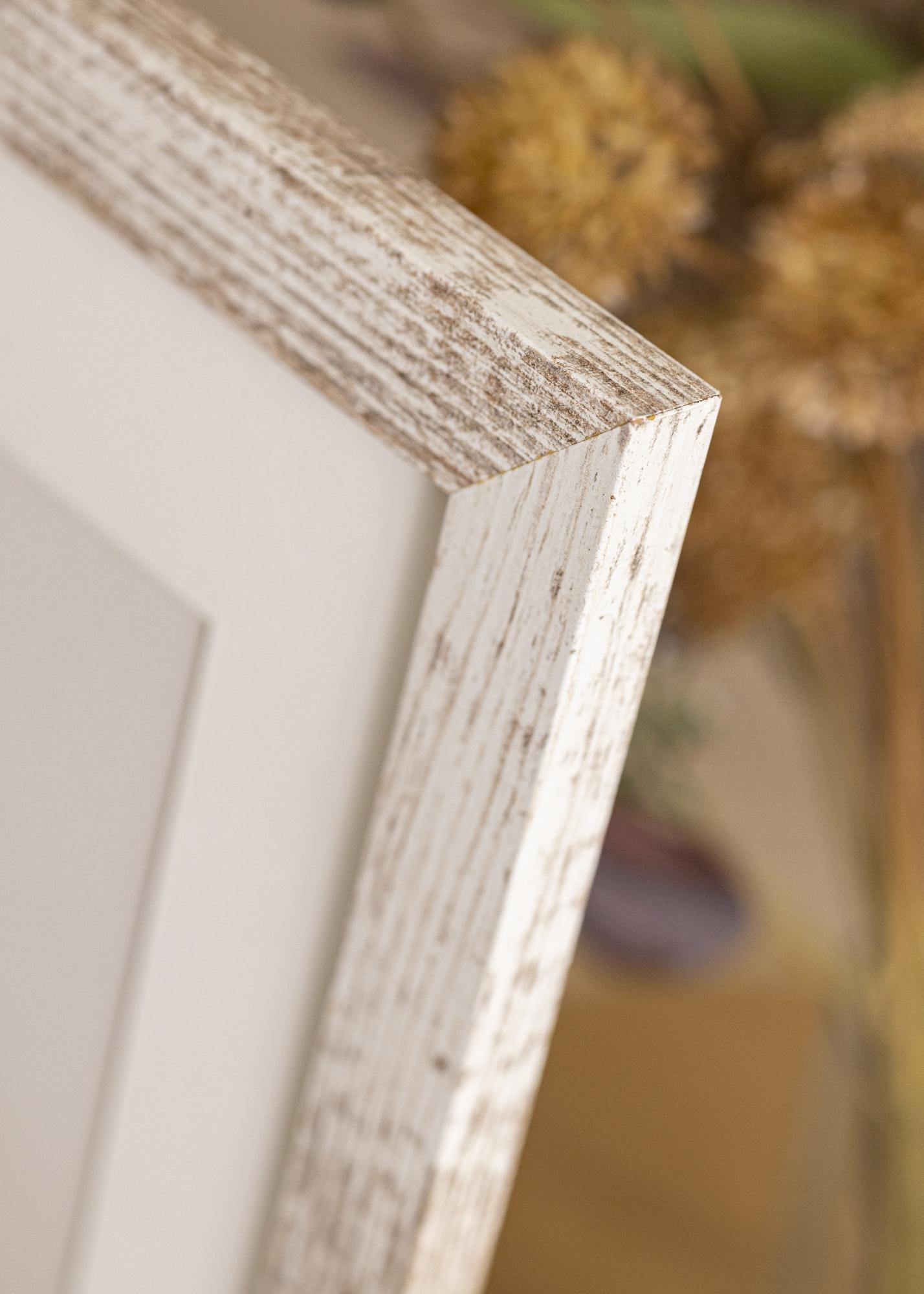 Stylový vintage rámeček se širokým profilovaným rámem s opotřebovaným vzhledem v bílé a dřevěné barvě. Dodává vašim obrázkům další rozměr a je perfektní, když chcete mít rámeček s opravdovým vintage pocitem.