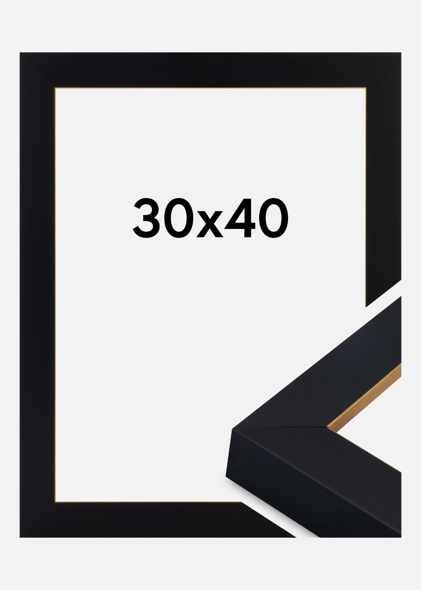 Tento elegantní fotorám je ideální pro zvýraznění vašich oblíbených motivů ve velikosti 30x40 cm. Moderní a čistý design kombinuje hladký, lesklý povrch v odstínu Černá s elegantním okrajem ve Zlatá barvě. Úzký profil vytváří jednoduchý a grafický dojem, který nechává motiv vyniknout – skvělá volba pro fotografie i plakáty.