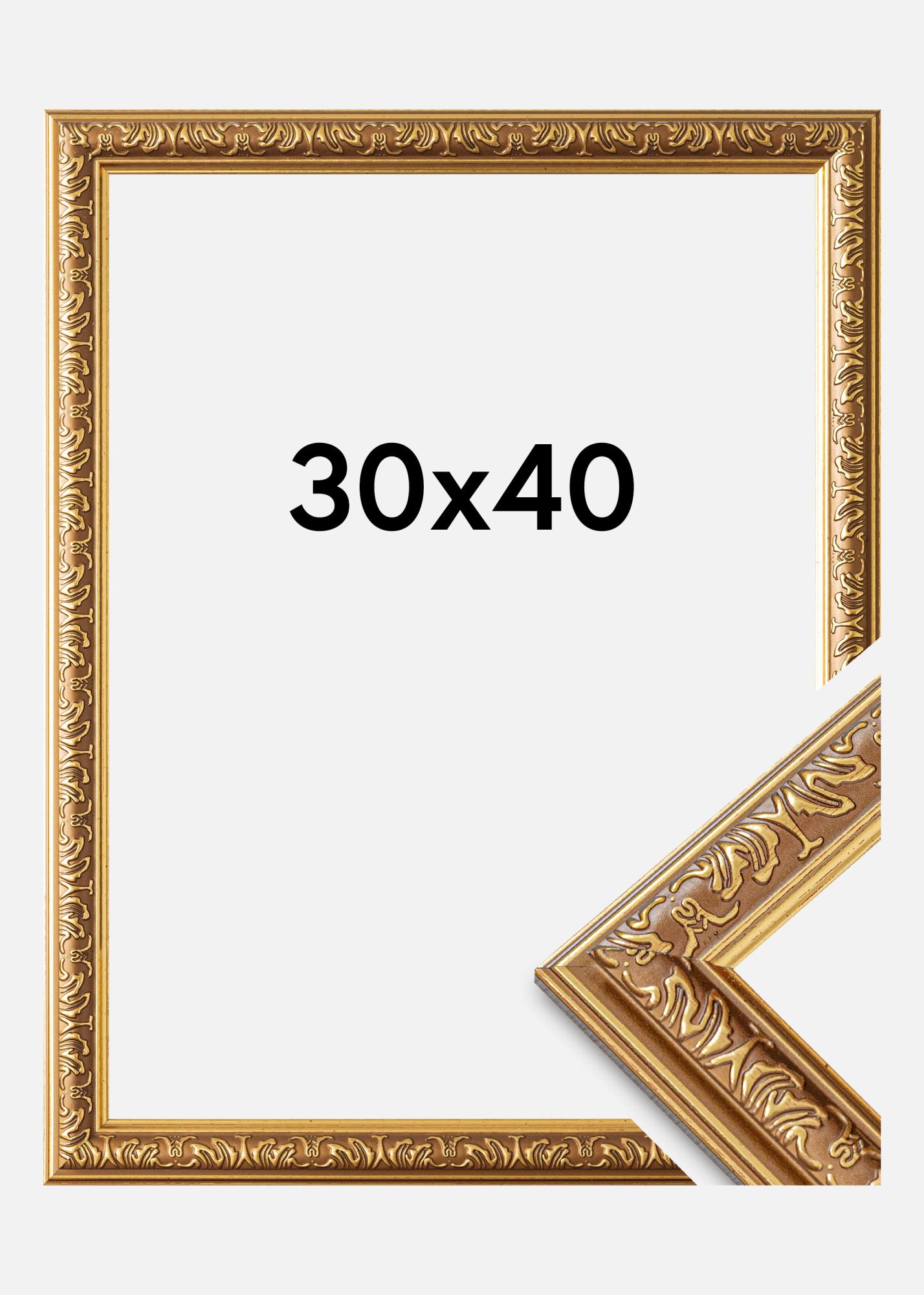 Tento zlatý rám je dokonalou kombinací klasické elegance a moderní funkčnosti. Se svou velikostí 30 x 40 cm je ideální pro zvýraznění vašich oblíbených motivů, ať už jde o umělecká díla nebo fotografie. Luxusní zlatá povrchová úprava a dekorativní, zdobené detaily podél vnitřního okraje rámu dodávají sofistikovanost, která dokonale zapadá do jak klasického, tak elegantního interiéru.