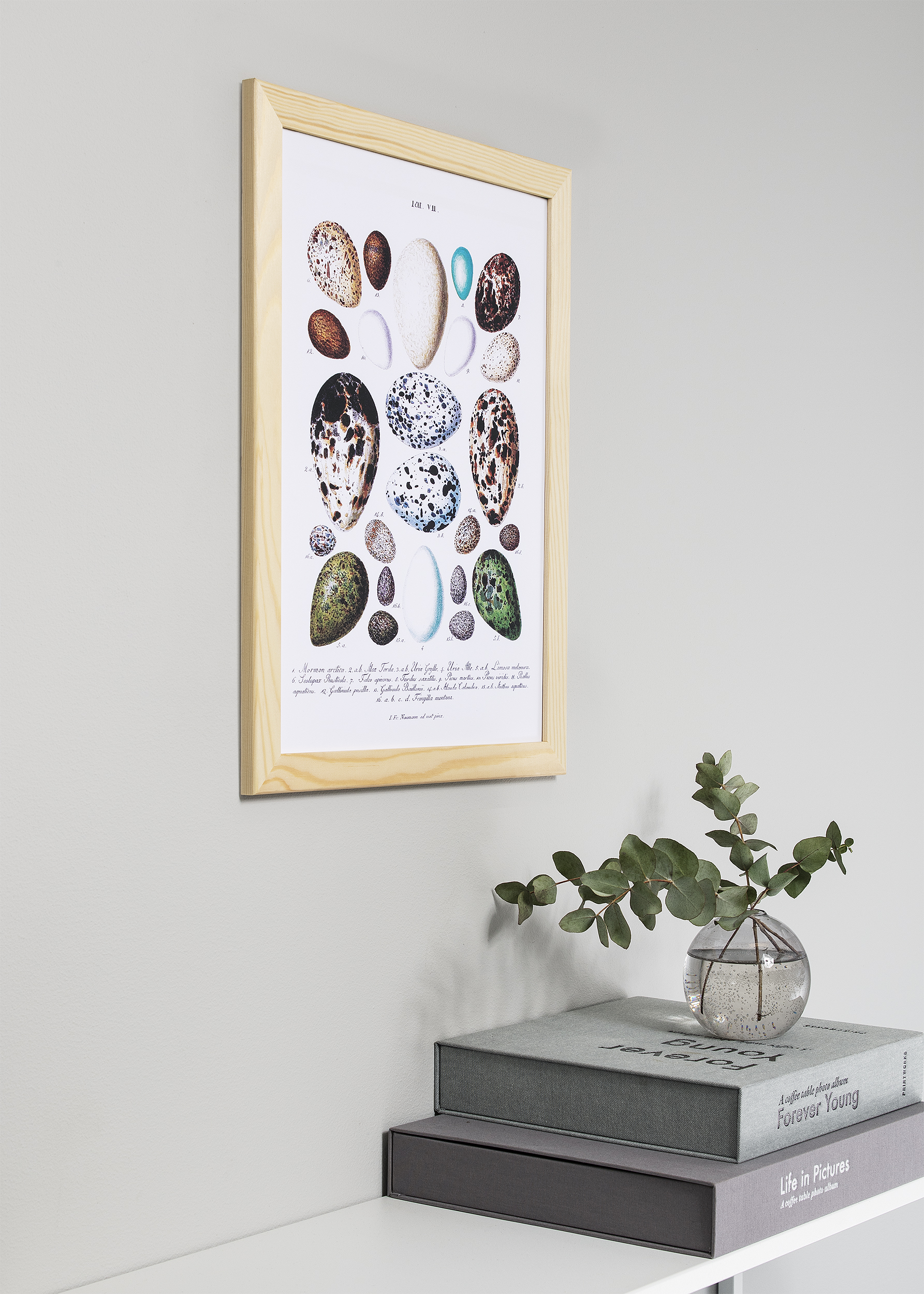 Černá pasparta doplňuje a zvýrazňuje motiv, vytváří vizuální oddělení a přidává další vrstvu sofistikovanosti. Rám je vybaven praktickými kovovými závěsy na zadní straně, což umožňuje snadné zavěšení.