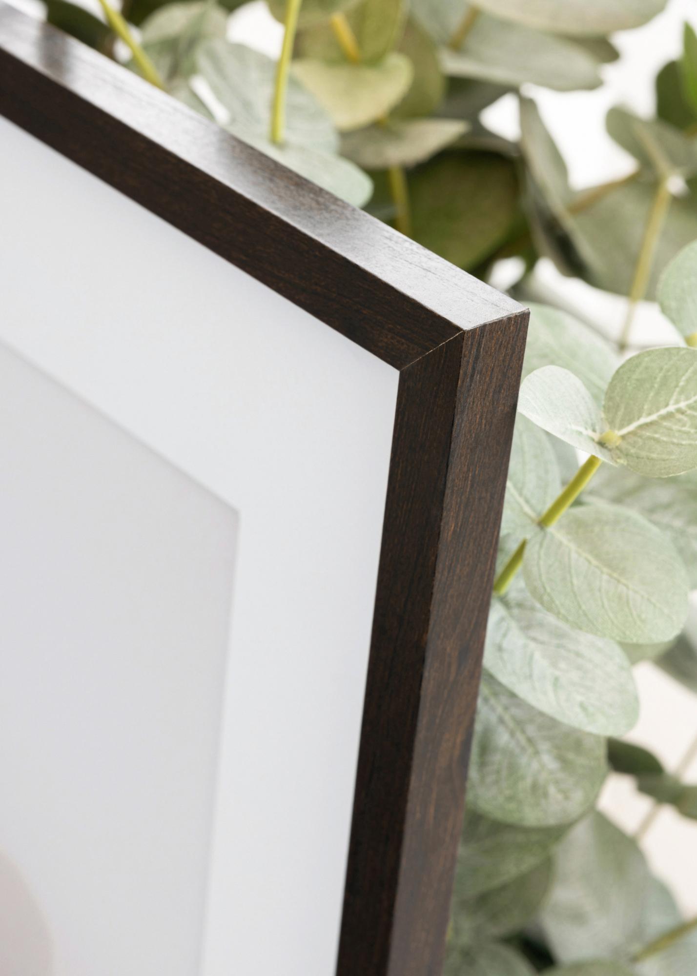 Rám v odstínu ořechového dřeva poskytuje motivům přírodní orámování s vysokou elegancí. Jedná se o model s 14 mm širokou lištou rámu s klasickým čtvercovým profilem a křišťálově čistým akrylátovým sklem. Akrylátové sklo je varianta skla, která je nerozbitná a lehká, což z něj dělá vhodný rám pro ty, kteří chtějí lehčí zavěšení.