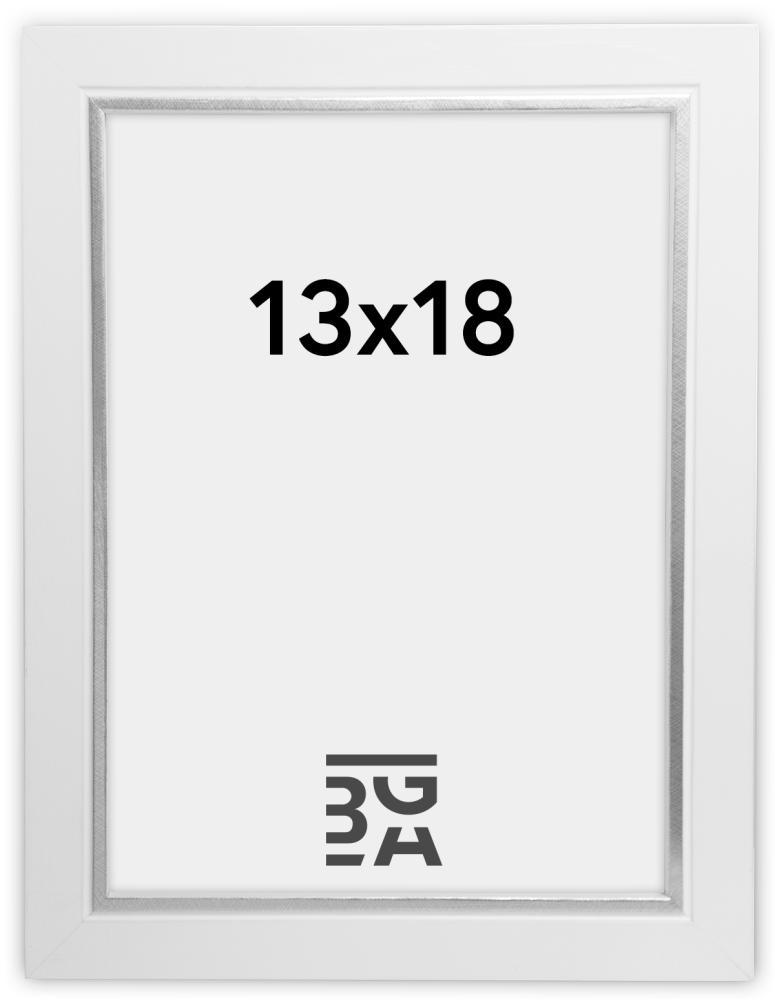 Stylový bílý fotorámeček ze dřeva s malým extra „zákrutem“ v podobě pěkného stříbrného okraje nejblíže motivu. Perfektní rám pro portrétní fotografie. Ideální na umístění na obrazovou polici pro elegantní koláž.