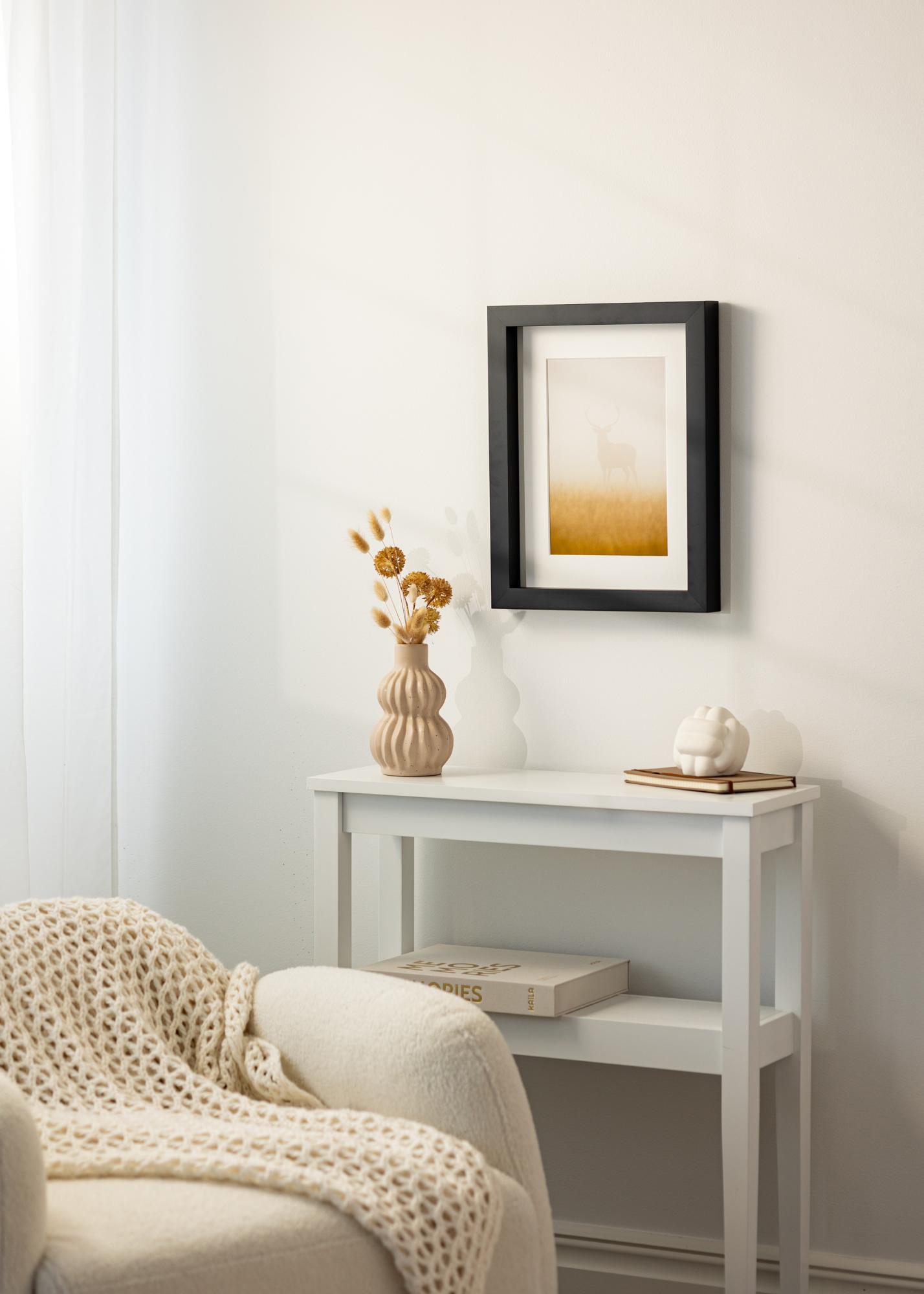 Rám má 30 mm široký rámový pruh a hloubku 50 mm, což mu dodává robustní a pevný pocit. Unikátní vlastností tohoto rámu je jeho distanční lišta, která vytváří vzdušný prostor mezi motivem a sklem. To přidává další rozměr vašemu zarámování a umožňuje skutečně klást důraz na motiv.