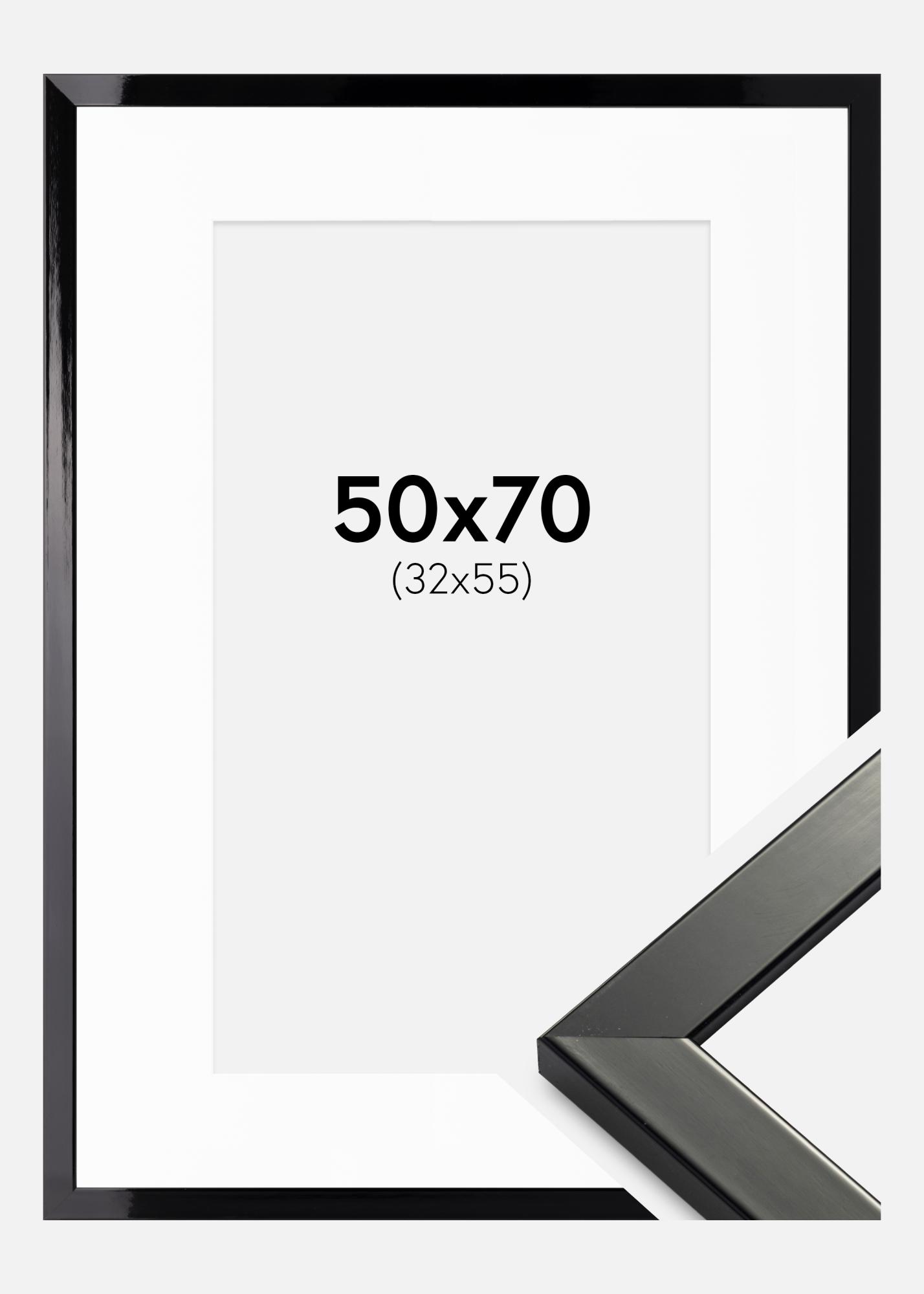 Rám Uppsala Cerná Vysoce lesklá 50x70 cm - Pasparta Bílá 33x56 cm