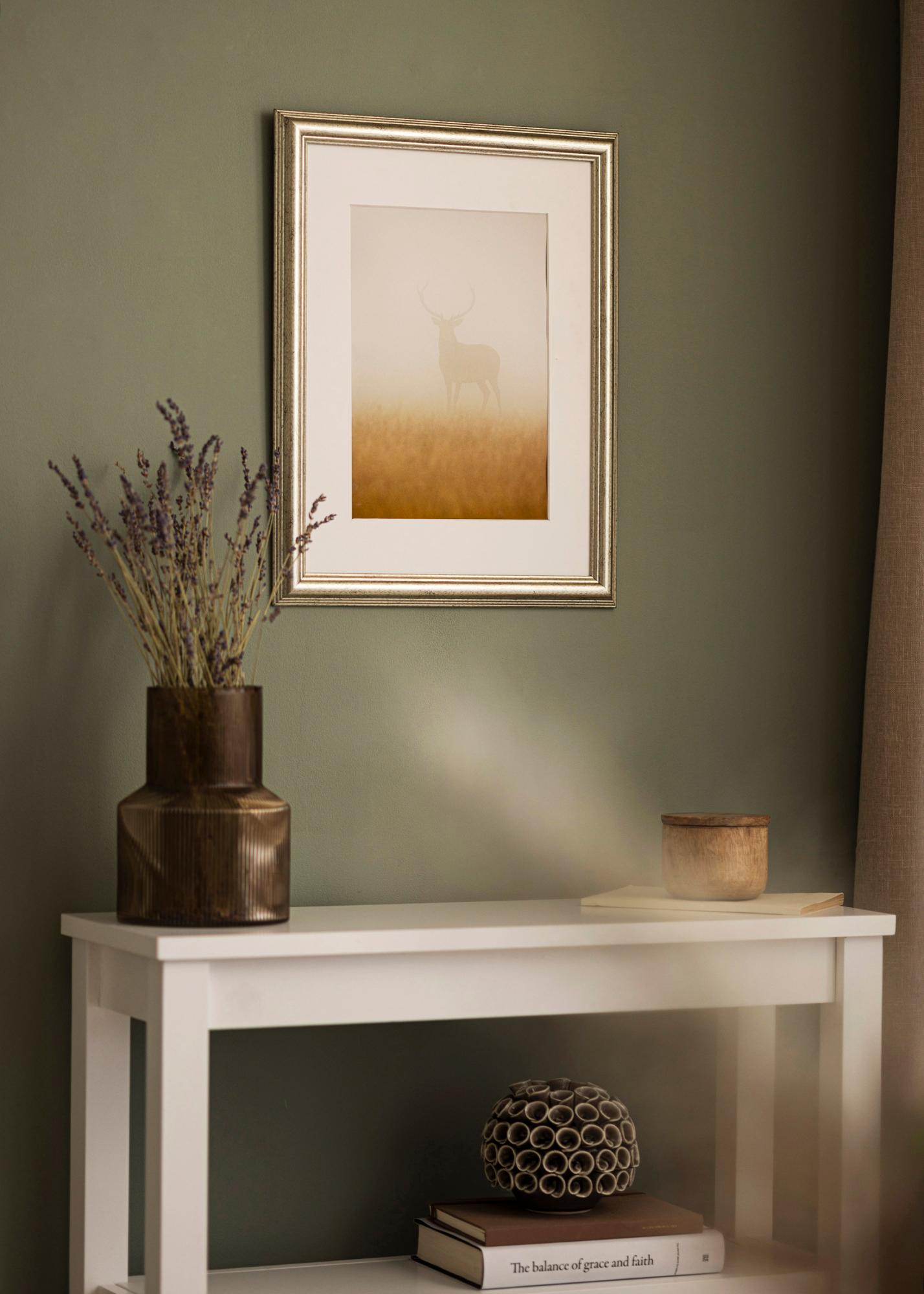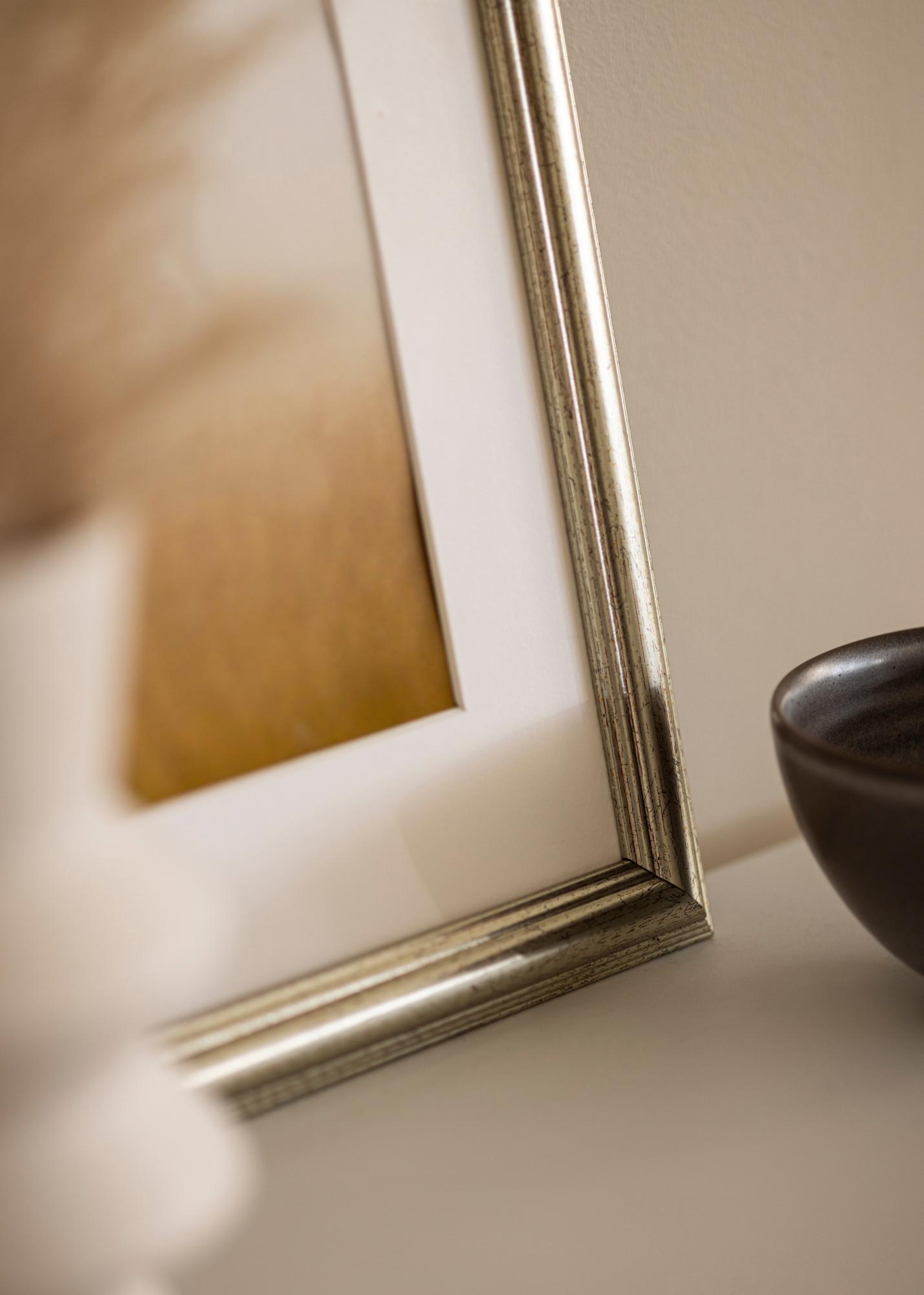 Västkusten Silver je švédský kvalitní rám od Galleri 1. Rám má výrazný stříbrný profil, který má šířku 31 mm. Stříbrná barva na rámu má také černě tečkované prvky, což dodává měkčí stříbrný profil. Díky tomu rám snadno zapadne a splyne s většinou prostředí.