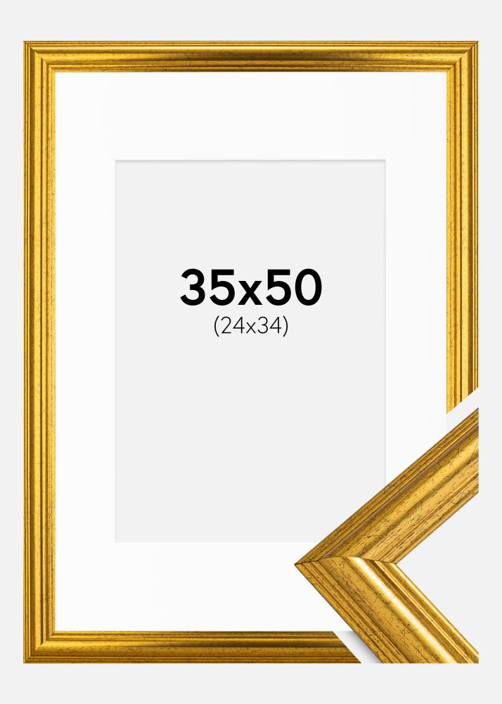 Přeměňte svou oblíbenou fotografii nebo umělecké dílo na elegantní nástěnnou dekoraci s naším exkluzivním zlatým rámem s bílým paspartou. Tento sofistikovaný rám je ideální pro zvýraznění a ochranu vašeho obrazu ve velikosti 25x35 cm. S šířkou 31 mm a hloubkou 17 mm dodává rám vybranému motivu výrazný a luxusní pocit.