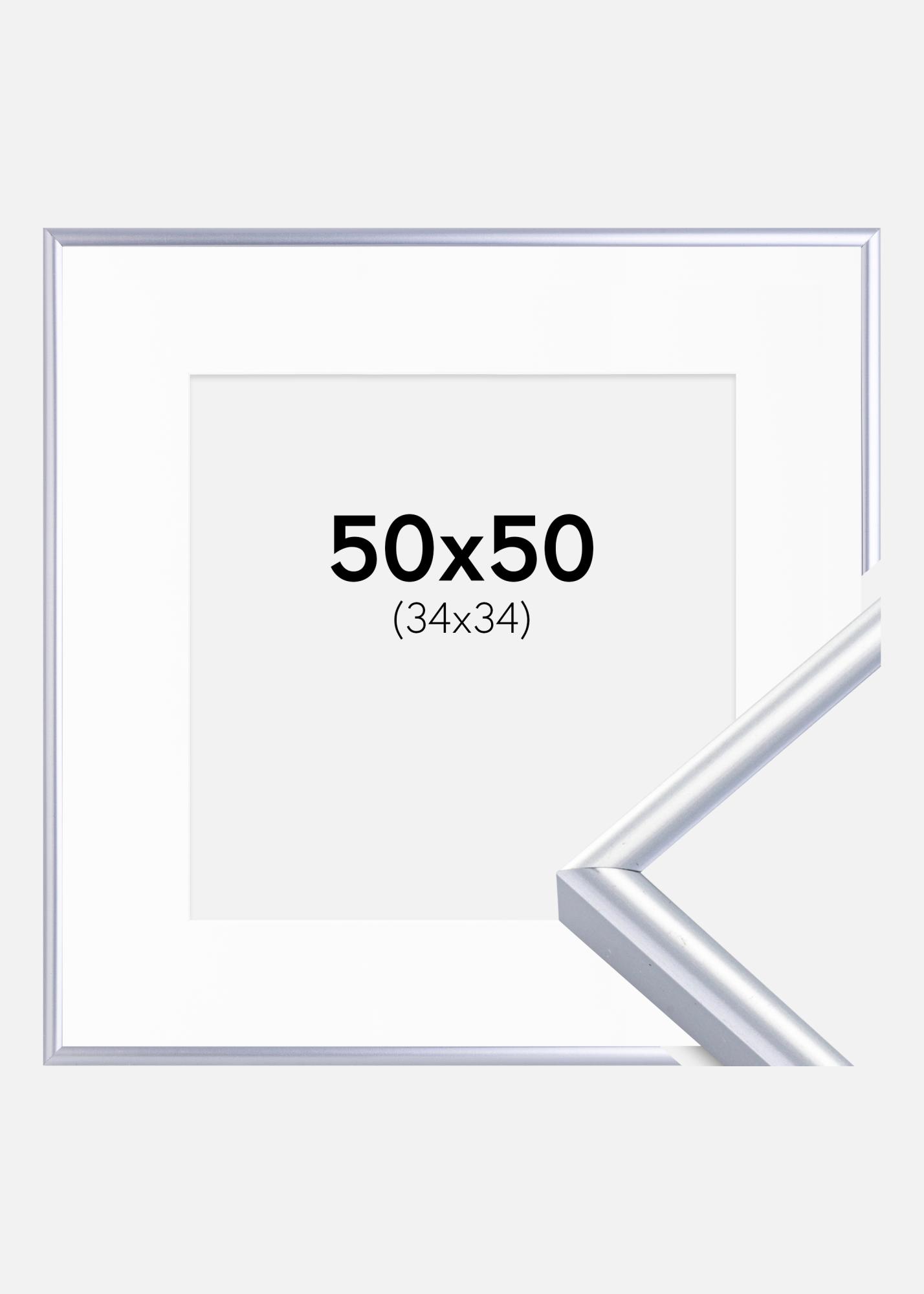 Rám Victoria Stríbrná 50x50 cm - Pasparta Bílá 35x35 cm