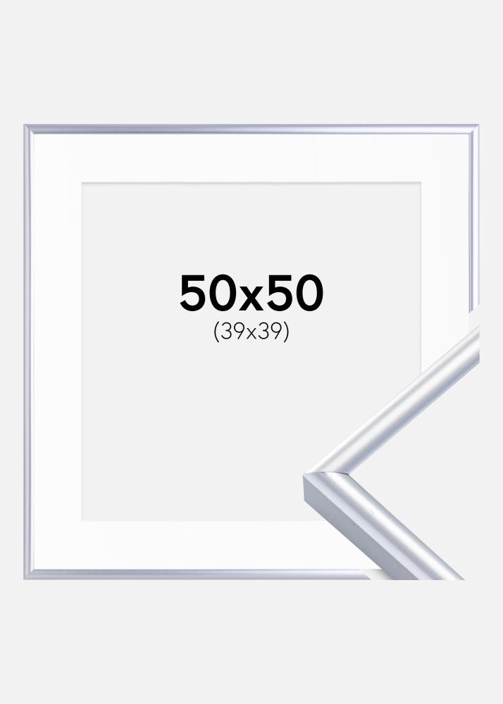 Rám Victoria Stríbrná 50x50 cm - Pasparta Bílá 40x40 cm