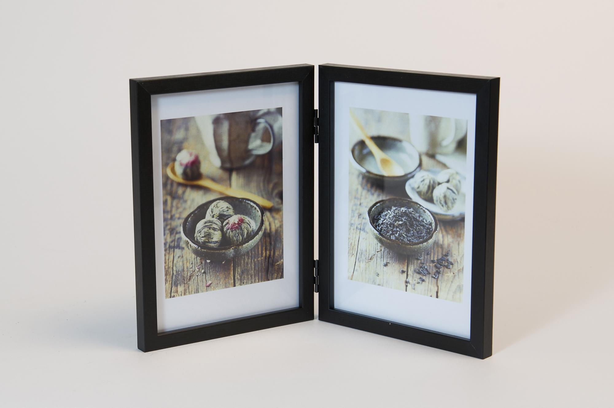 Kabát Černý Vikram má místo pro 2 fotografie. Rám má čtvercový moderní profil, který je vyroben z černě lakovaného dřeva.