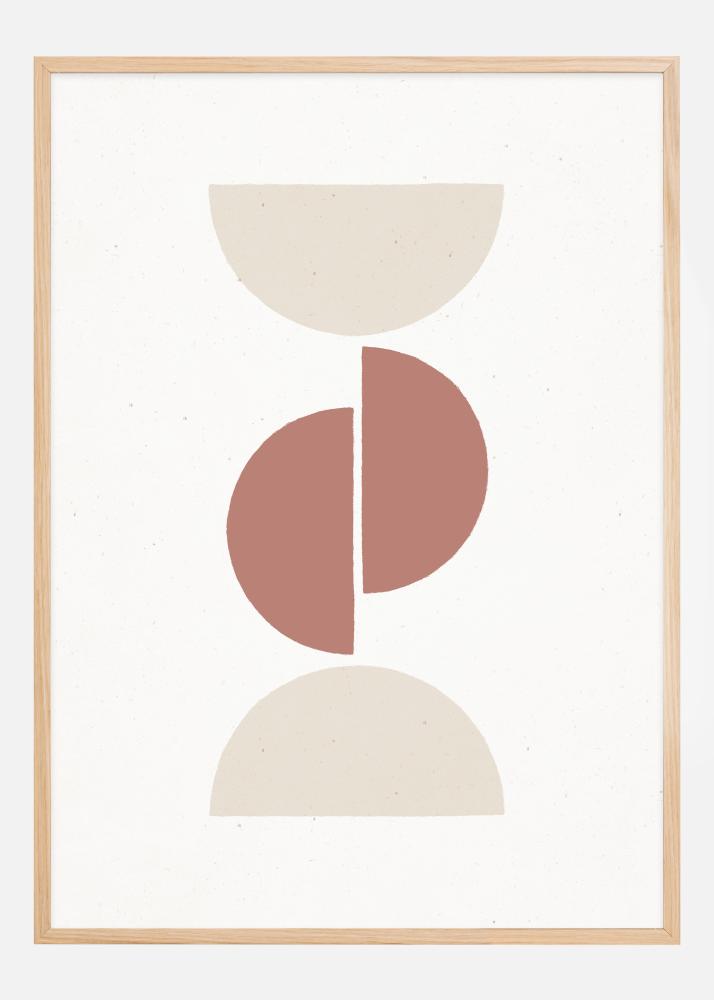 Tento umělecký plakát, nazvaný 'Rust and Sand - Geo', zobrazuje kompozici abstraktních geometrických tvarů v harmonické rovnováze zemských tónů. Design kombinuje půlměsíce a kruhové segmenty v rezavých červených a pískových odstínech, které se vzájemně zvýrazňují a vytvářejí pocit prostoru a rovnováhy. Je to elegantní a moderní interpretace geometrického minimalismu, která perfektně zapadne do skandinávského nebo současného interiéru.