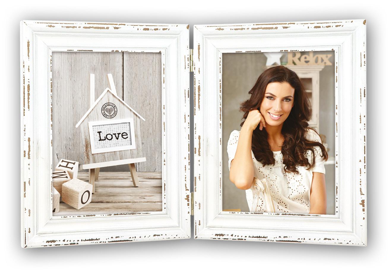 Pokud máte rádi staré a charakteristické věci, určitě si oblíbíte tento krásný skládací rám! Rám se skládá ze 2 klasických rámů s opotřebovanými detaily, které jsou spojeny 2 stříbrně zbarvenými panty. Vložte své oblíbené motivy a nechte, aby se stal útulnou součástí na komodě nebo nočním stolku.