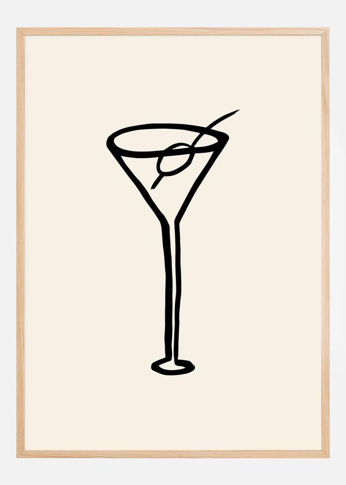 Jednoduchý plakát s koktejlovou sklenicí s olivou. Získejte ten pocit jako James Bond, když si pověsíte tento jednoduchý černý lineární kreslený martini sklenici na svou zeď. Kombinujte s odvážnou barvou stěn, aby tato silná kresba vynikla. Budeš z toho otřesený nebo dojatý?