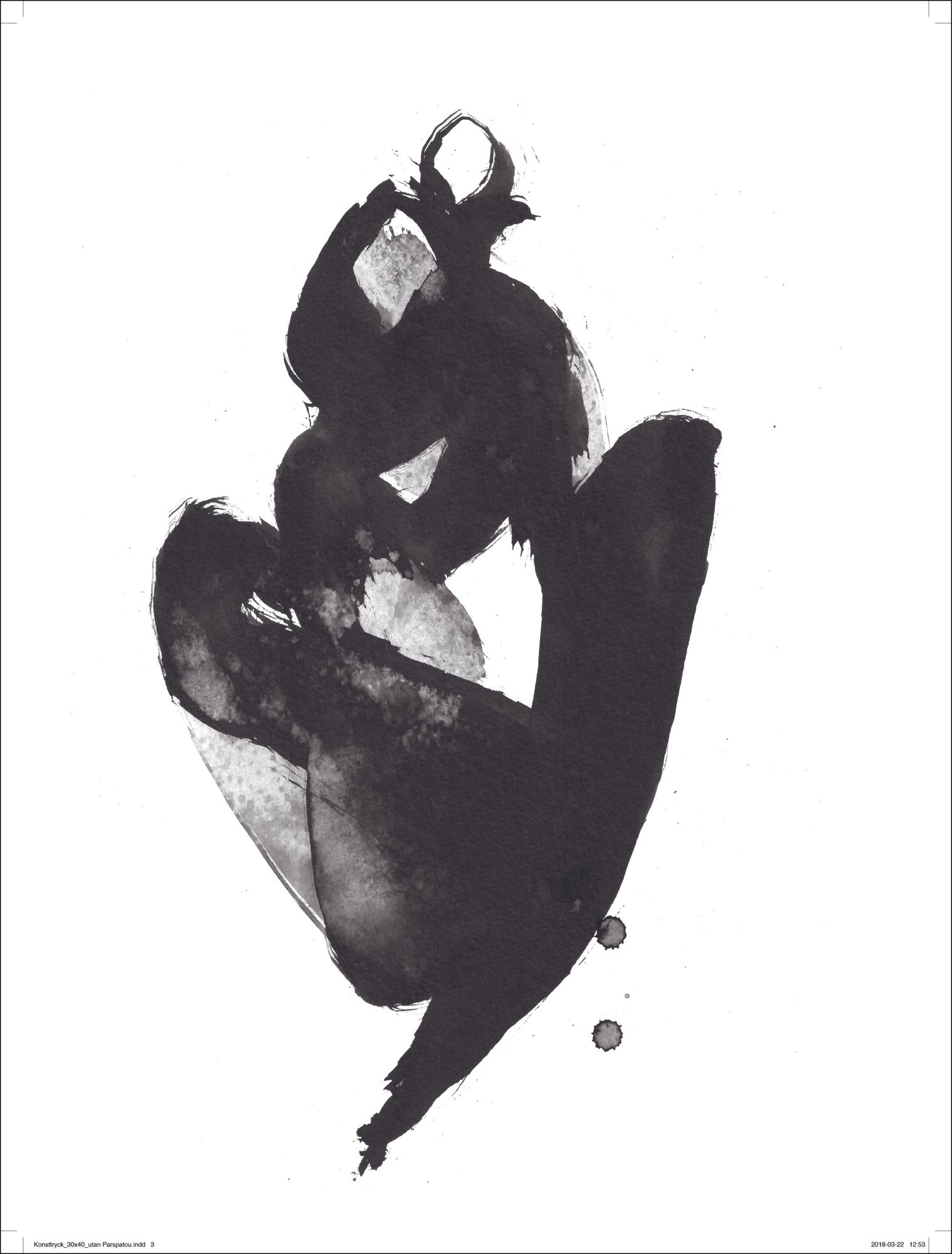 Abstraktní umělecký plakát v černé akvarelu vytvořený Jörgen Hansson Art. Minimalistický a elegantní plakát, který se perfektně hodí do moderního nebo uměním inspirovaného domova.