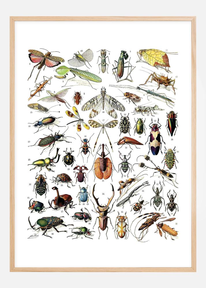 Přineste si přírodu domů, když pověsíte tento nádherný školní plakát! Motiv je převzat z jedné staré knihy o entomologii a zobrazuje velkou skupinu pestrobarevných hmyzu. Jelikož je plakát k dispozici v několika různých velikostech, snadno najdete takový, který se hodí právě pro váš účel. Doplňte ho klidně pěkným rámem z naší široké nabídky!